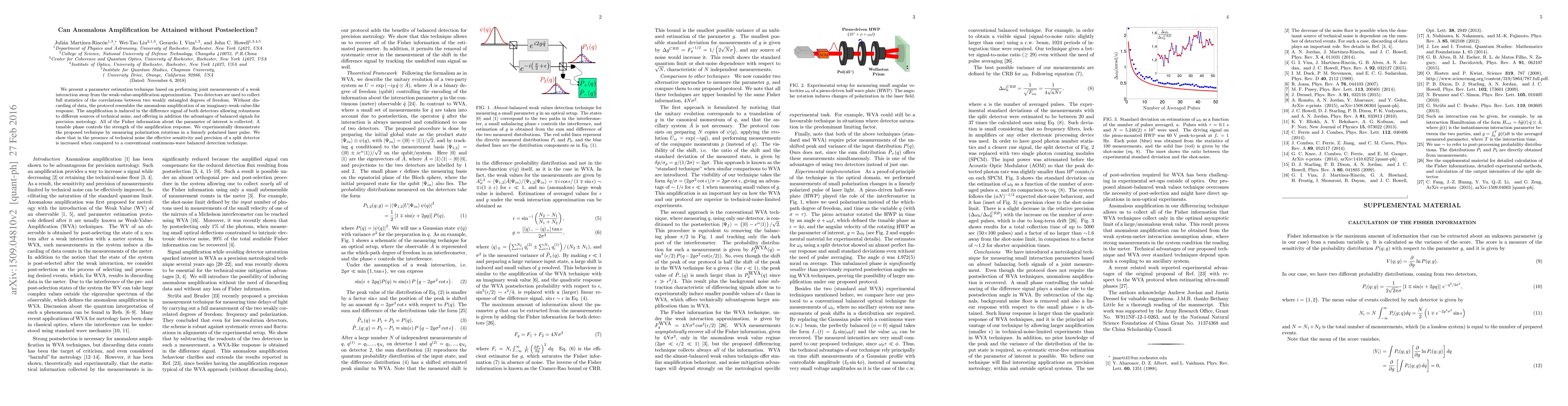 This paper proposes a novel parameter estimation technique that achieves anomalous amplification without postselection by jointly measuring weak interactions. It demonstrates increased sensitivity and precision in polarization rotations using a split detector compared to conventional methods.
