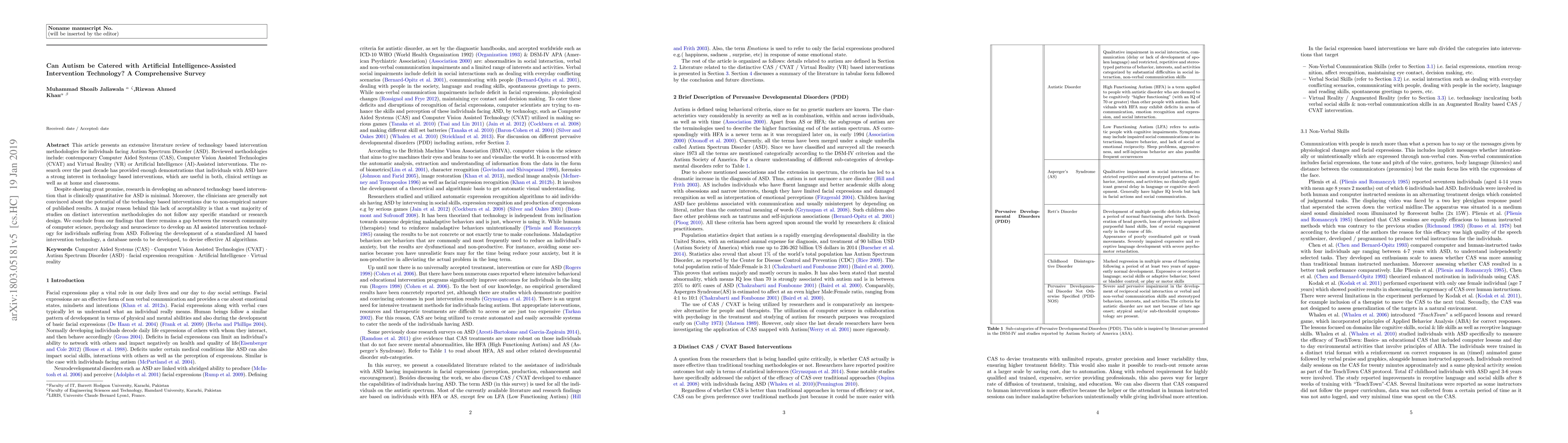 This article presents an extensive literature review of technology based intervention methodologies for individuals facing Autism Spectrum Disorder (ASD). Reviewed methodologies include: contemporary Computer Aided Systems (CAS), Computer Vision Assisted Technologies (CVAT) and Virtual Reality (VR) or Artificial Intelligence (AI)-Assisted interventions. The research over the past decade has provided enough demonstrations that individuals with ASD have a strong interest in technology based interventions, which are useful in both, clinical settings as well as at home and classrooms. Despite showing great promise, research in developing an advanced technology based intervention that is clinically quantitative for ASD is minimal. Moreover, the clinicians are generally not convinced about the potential of the technology based interventions due to non-empirical nature of published results. A major reason behind this lack of acceptability is that a vast majority of studies on distinct intervention methodologies do not follow any specific standard or research design. We conclude from our findings that there remains a gap between the research community of computer science, psychology and neuroscience to develop an AI assisted intervention technology for individuals suffering from ASD. Following the development of a standardized AI based intervention technology, a database needs to be developed, to devise effective AI algorithms.