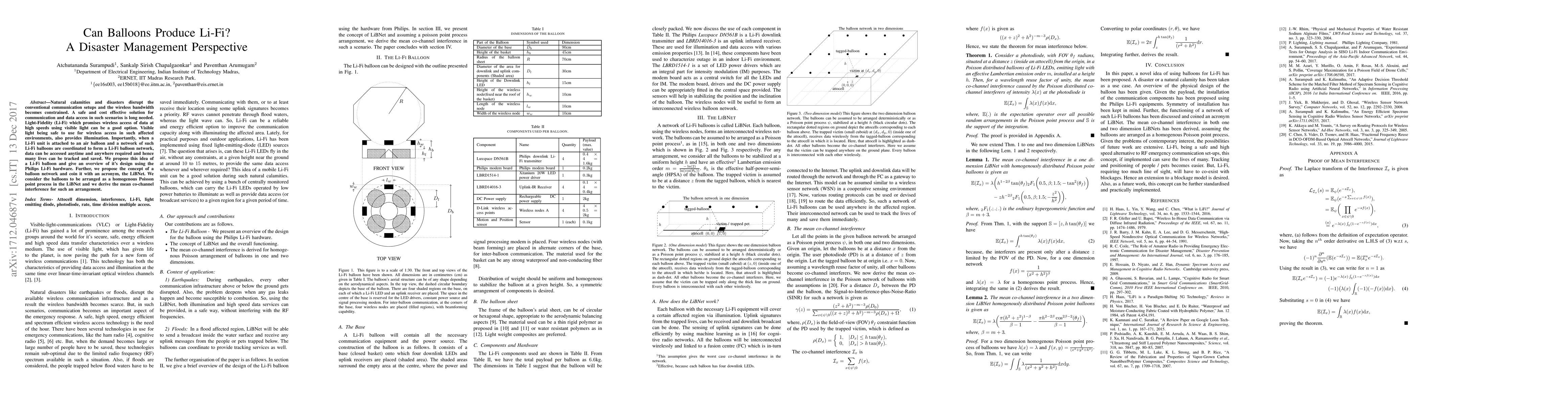 This paper explores the feasibility of using Li-Fi balloons for disaster management, proposing a Li-Fi balloon network (LiBNet) to provide safe, high-speed wireless data access in disaster-stricken areas. It outlines the design using Philips Li-Fi hardware and analyzes the mean co-channel interference in a balloon network arranged as a homogeneous Poisson point process.