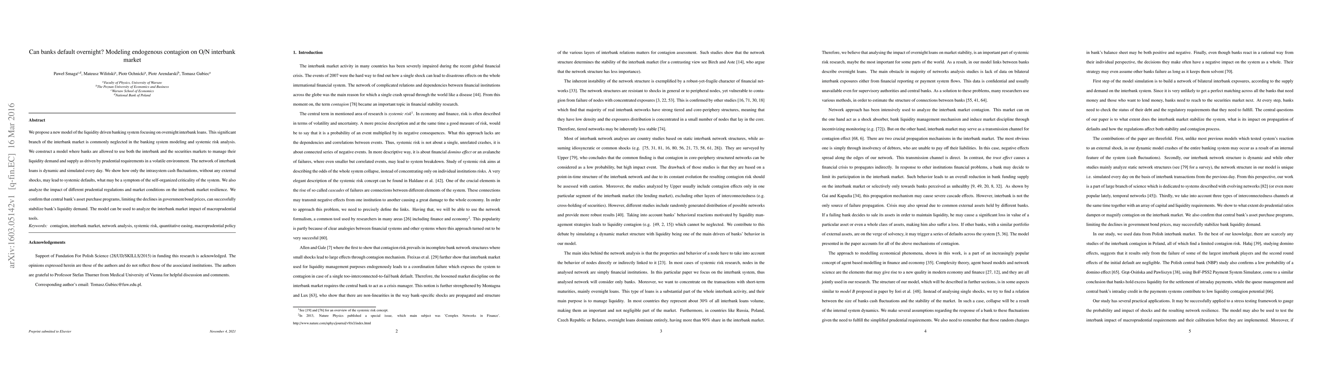 We propose a new model of the liquidity driven banking system focusing on overnight interbank loans. This significant branch of the interbank market is commonly neglected in the banking system modeling and systemic risk analysis. We construct a model where banks are allowed to use both the interbank and the securities markets to manage their liquidity demand and supply as driven by prudential requirements in a volatile environment. The network of interbank loans is dynamic and simulated every day. We show how only the intrasystem cash fluctuations, without any external shocks, may lead to systemic defaults, what may be a symptom of the self-organized criticality of the system. We also analyze the impact of different prudential regulations and market conditions on the interbank market resilience. We confirm that central bank's asset purchase programs, limiting the declines in government bond prices, can successfully stabilize bank's liquidity demand. The model can be used to analyze the interbank market impact of macroprudential tools.