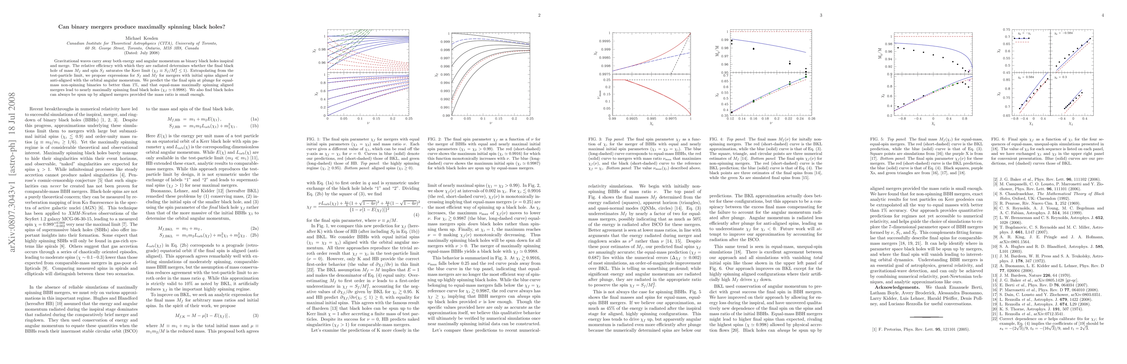 This paper investigates whether binary black hole mergers can produce black holes with maximal spin, finding that equal-mass, maximally spinning aligned mergers can result in final black holes with spins close to the Kerr limit ($\chi_f \simeq 0.9988$). It also concludes that aligned mergers can spin up black holes if the mass ratio is sufficiently small.