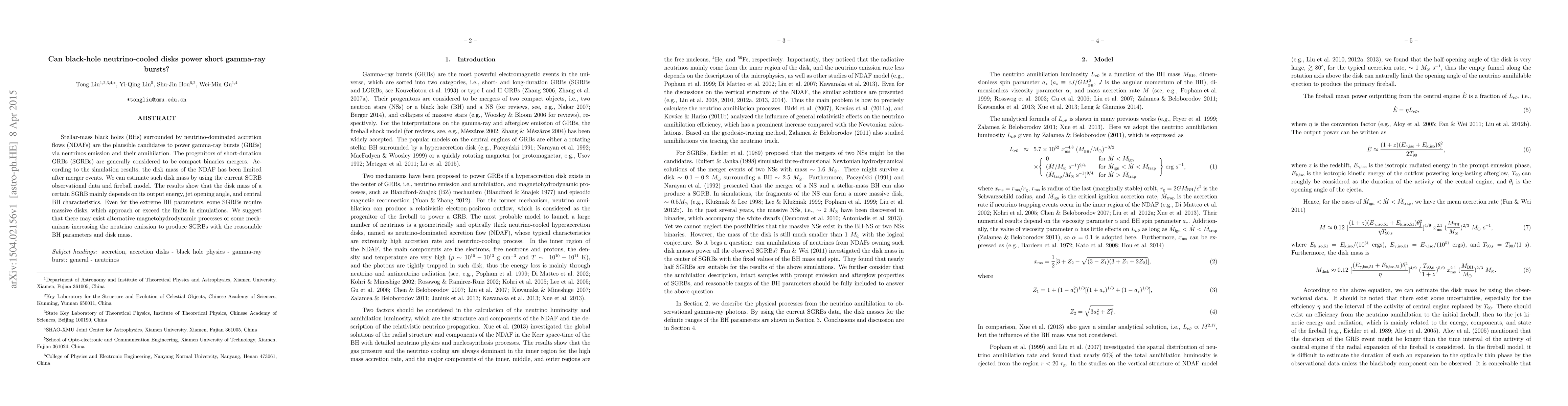Stellar-mass black holes (BHs) surrounded by neutrino-dominated accretion flows (NDAFs) are the plausible candidates to power gamma-ray bursts (GRBs) via neutrinos emission and their annihilation. The progenitors of short-duration GRBs (SGRBs) are generally considered to be compact binaries mergers. According to the simulation results, the disk mass of the NDAF has been limited after merger events. We can estimate such disk mass by using the current SGRB observational data and fireball model. The results show that the disk mass of a certain SGRB mainly depends on its output energy, jet opening angle, and central BH characteristics. Even for the extreme BH parameters, some SGRBs require massive disks, which approach or exceed the limits in simulations. We suggest that there may exist alternative magnetohydrodynamic processes or some mechanisms increasing the neutrino emission to produce SGRBs with the reasonable BH parameters and disk mass.