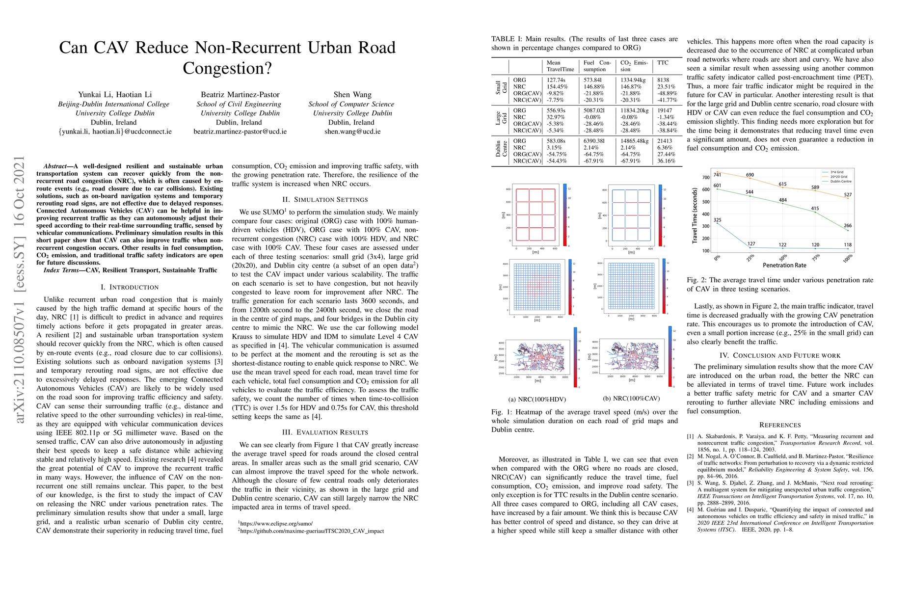 A well-designed resilient and sustainable urban transportation system can recover quickly from the non-recurrent road congestion (NRC), which is often caused by en-route events (e.g., road closure due to car collisions). Existing solutions, such as on-board navigation systems and temporary rerouting road signs, are not effective due to delayed responses. Connected Autonomous Vehicles (CAV) can be helpful in improving recurrent traffic as they can autonomously adjust their speed according to their real-time surrounding traffic, sensed by vehicular communications. Preliminary simulation results in this short paper show that CAV can also improve traffic when non-recurrent congestion occurs. Other results in fuel consumption, CO2 emission, and traditional traffic safety indicators are open for future discussions.