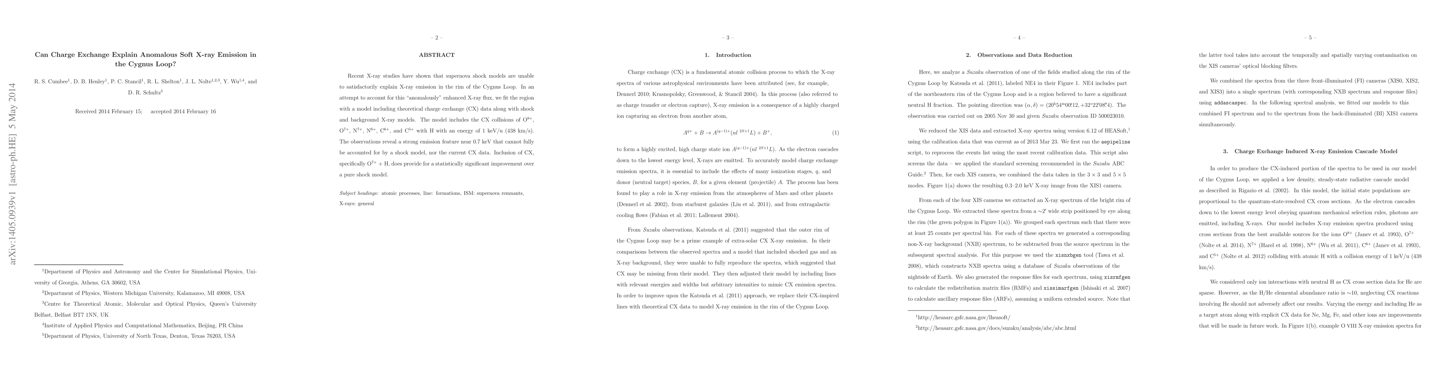 Recent X-ray studies have shown that supernova shock models are unable to satisfactorily explain X-ray emission in the rim of the Cygnus Loop. In an attempt to account for this anomalously enhanced X-ray flux, we fit the region with a model including theoretical charge exchange (CX) data along with shock and background X-ray models. The model includes the CX collisions of $O^{8+}$, $O{7+}$, $N^{7+}$, $N^{6+}$, $C^{6+}$, and $C^{5+}$ with H with an energy of 1 keV/u (438 km/s). The observations reveal a strong emission feature near 0.7 keV that cannot fully be accounted for by a shock model, nor the current CX data. Inclusion of CX, specifically $O^{7+} + H$, does provide for a statistically significant improvement over a pure shock model.