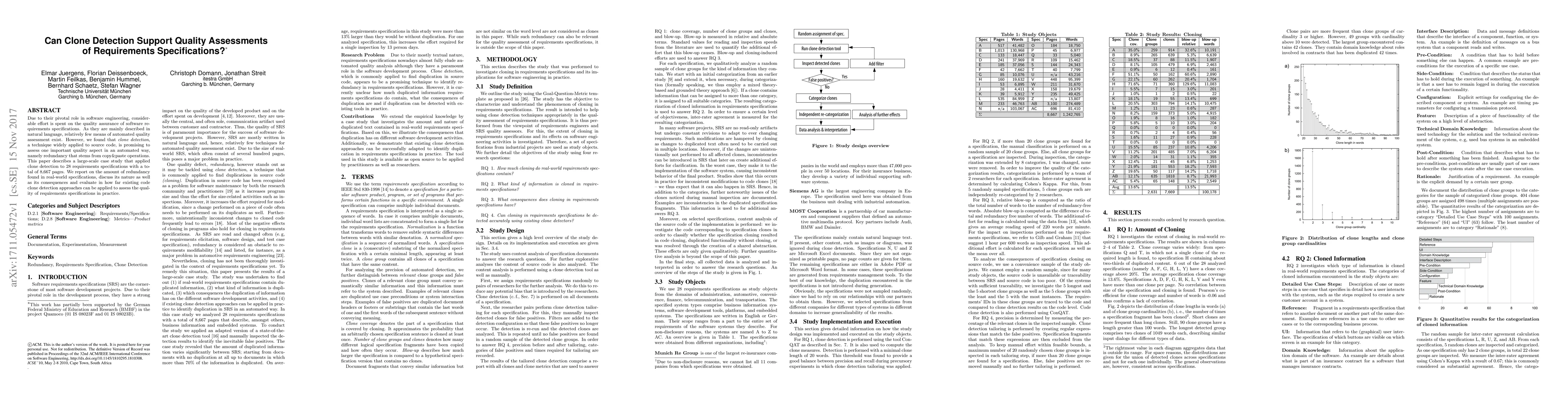 This paper explores the application of clone detection, traditionally used in source code, to assess redundancy in software requirements specifications. Through a large-scale case study involving 28 specifications, the authors found significant redundancy and evaluated the effectiveness of existing code clone detection methods for this new domain.