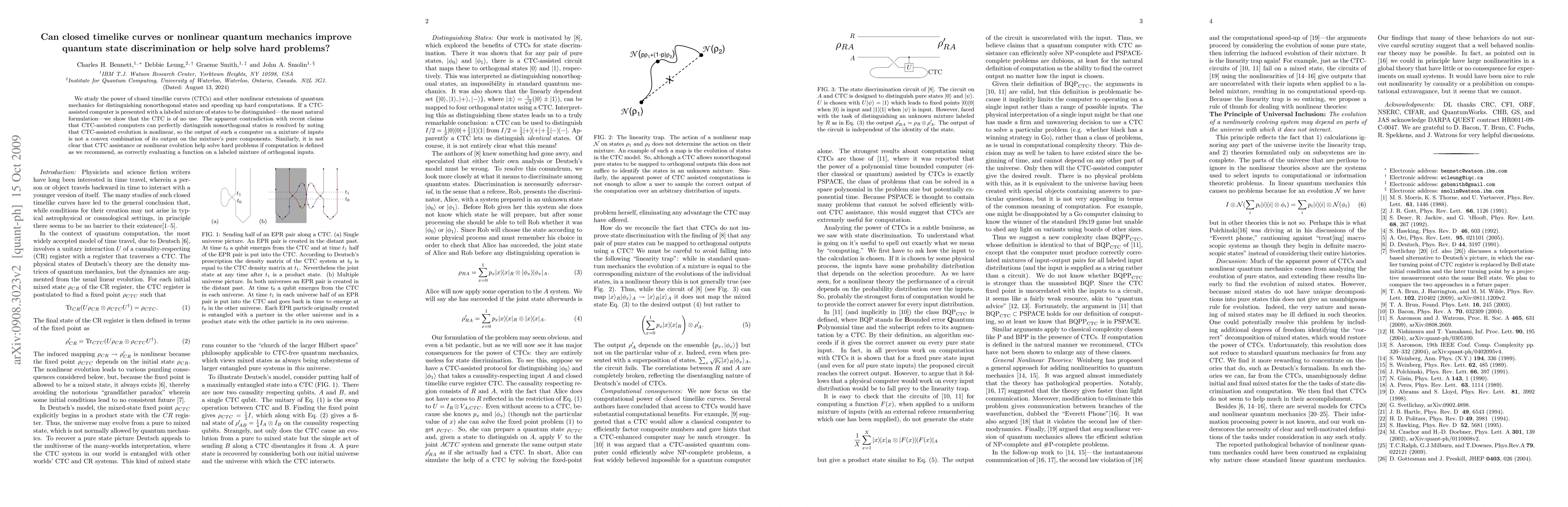 This paper explores whether closed timelike curves (CTCs) and nonlinear quantum mechanics can enhance quantum state discrimination or solve hard computational problems. It concludes that CTCs do not aid in distinguishing nonorthogonal states when presented with a labeled mixture of states, resolving previous claims by highlighting the nonlinear nature of CTC-assisted evolution.