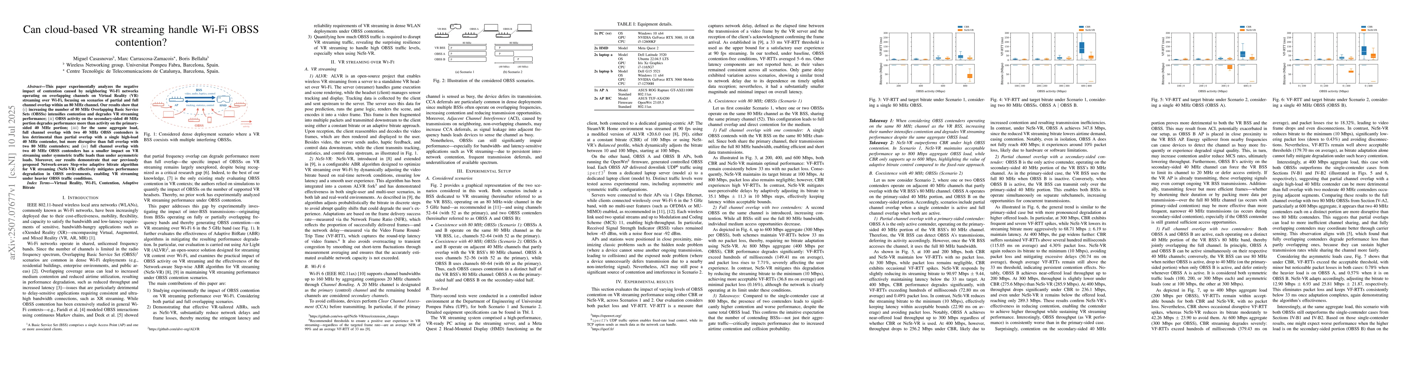 The research employs experimental analysis using a controlled indoor Wi-Fi 6 testbed with a VR streaming system comprising a high-performance PC as a streaming server and a Meta Quest 2 HMD as a client. The setup includes two OBSS APs generating controlled OBSS loads, each connected to a dedicated gaming-centric AP via 1 Gbps Ethernet, while the client connects wirelessly over Wi-Fi 6 in the 5 GHz band.
