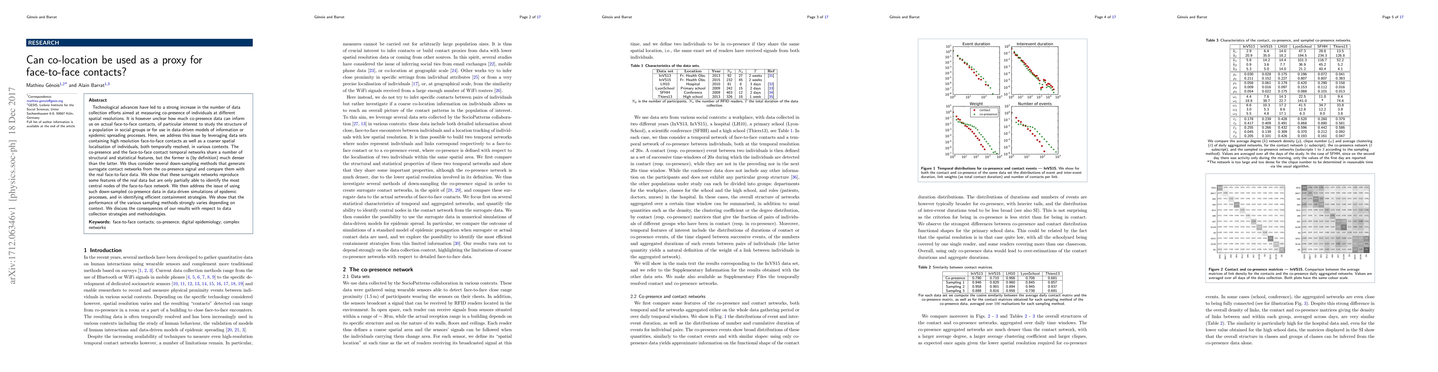 Researchers investigated whether co-location data can accurately represent face-to-face contacts and found that while it can capture some features of real data, it is limited in identifying key nodes in the contact network.