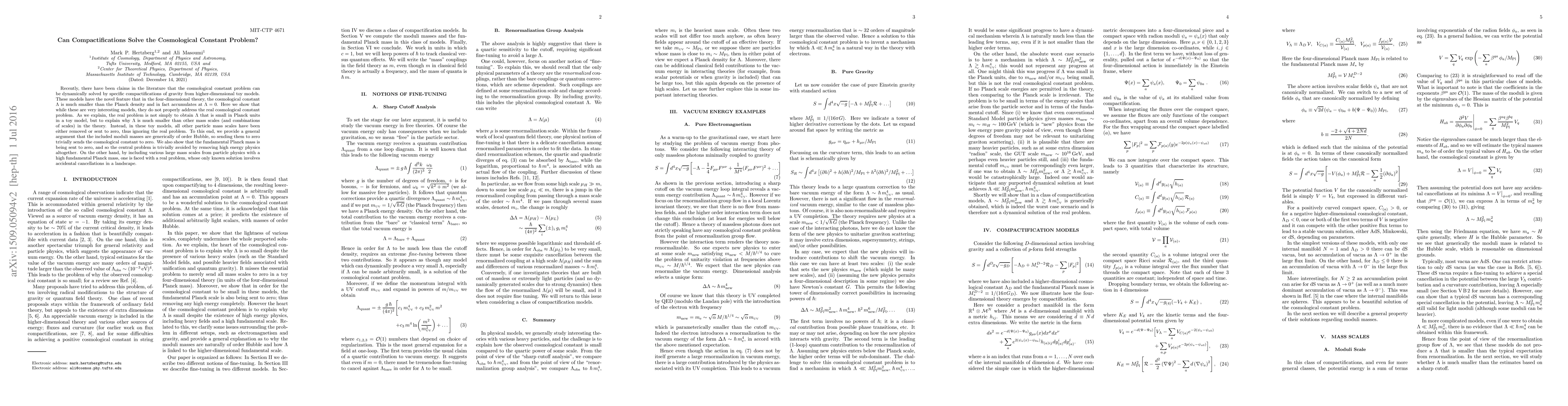 This paper argues that proposed compactifications of higher-dimensional models do not solve the cosmological constant problem because they either remove other mass scales or trivially set the cosmological constant to zero by sending moduli masses to zero. The real issue lies in explaining why the cosmological constant is much smaller than other mass scales in the theory.