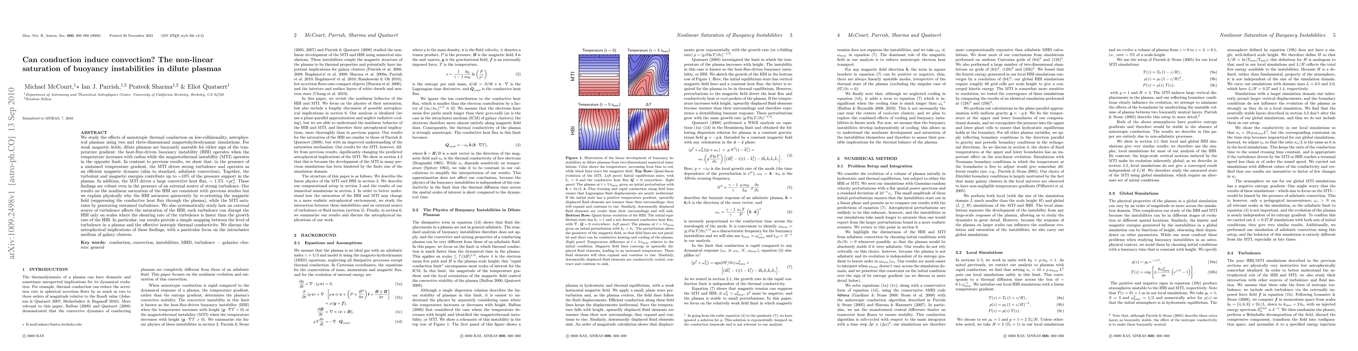 We study the effects of anisotropic thermal conduction on low-collisionality, astrophysical plasmas using two and three-dimensional magnetohydrodynamic simulations. For weak magnetic fields, dilute plasmas are buoyantly unstable for either sign of the temperature gradient: the heat-flux-driven buoyancy instability (HBI) operates when the temperature increases with radius while the magnetothermal instability (MTI) operates in the opposite limit. In contrast to previous results, we show that, in the presence of a sustained temperature gradient, the MTI drives strong turbulence and operates as an efficient magnetic dynamo (akin to standard, adiabatic convection). Together, the turbulent and magnetic energies contribute up to ~10% of the pressure support in the plasma. In addition, the MTI drives a large convective heat flux, ~1.5% of rho c_s^3. These findings are robust even in the presence of an external source of strong turbulence. Our results on the nonlinear saturation of the HBI are consistent with previous studies but we explain physically why the HBI saturates quiescently by re-orienting the magnetic field (suppressing the conductive heat flux through the plasma), while the MTI saturates by generating sustained turbulence. We also systematically study how an external source of turbulence affects the saturation of the HBI: such turbulence can disrupt the HBI only on scales where the shearing rate of the turbulence is faster than the growth rate of the HBI. In particular, our results provide a simple mapping between the level of turbulence in a plasma and the effective isotropic thermal conductivity. We discuss the astrophysical implications of these findings, with a particular focus on the intracluster medium of galaxy clusters.