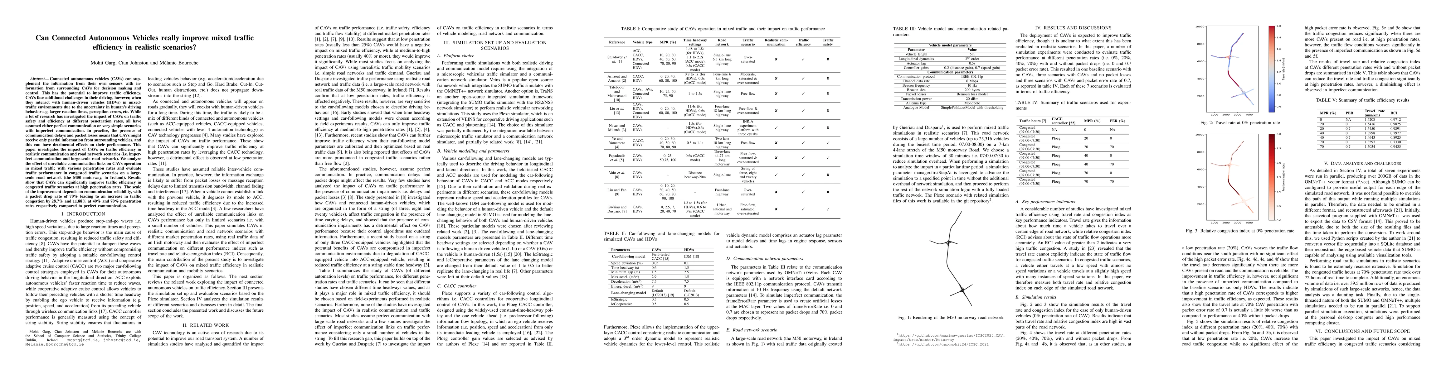 This paper examines how connected autonomous vehicles (CAVs) can improve traffic efficiency in mixed-traffic scenarios, considering realistic communication challenges. Results indicate CAVs can significantly enhance efficiency at high penetration rates, but communication reliability is crucial, with high packet drop rates leading to increased congestion.