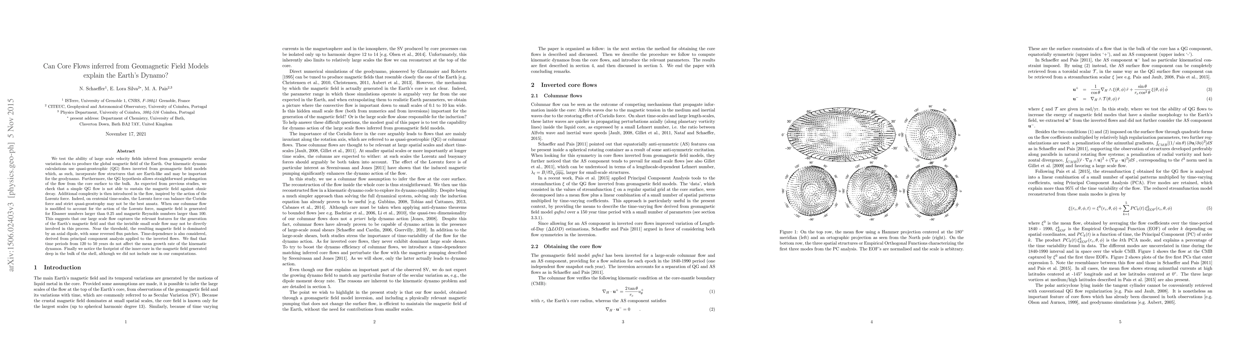 This study investigates whether large-scale velocity fields inferred from geomagnetic secular variation data can generate the Earth's magnetic field. The results suggest that while simple quasi-geostrophic flows are insufficient, more complex flows inspired by the Lorentz force can generate a magnetic field, indicating that large-scale features may be key for the geodynamo.