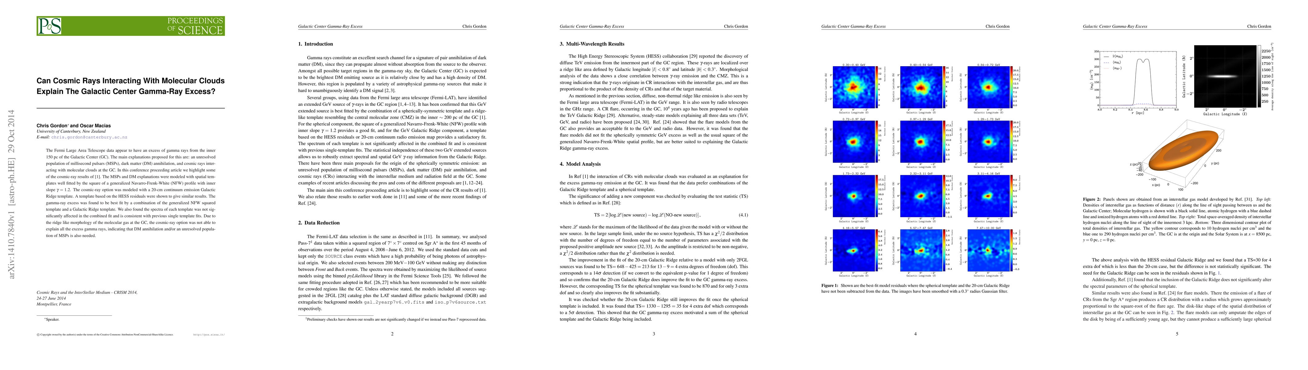 This paper investigates whether cosmic rays interacting with molecular clouds in the Galactic Center can explain the observed gamma-ray excess, finding that while a combination of cosmic-ray interactions and dark matter annihilation or millisecond pulsars provides the best fit, cosmic rays alone cannot fully account for the excess.