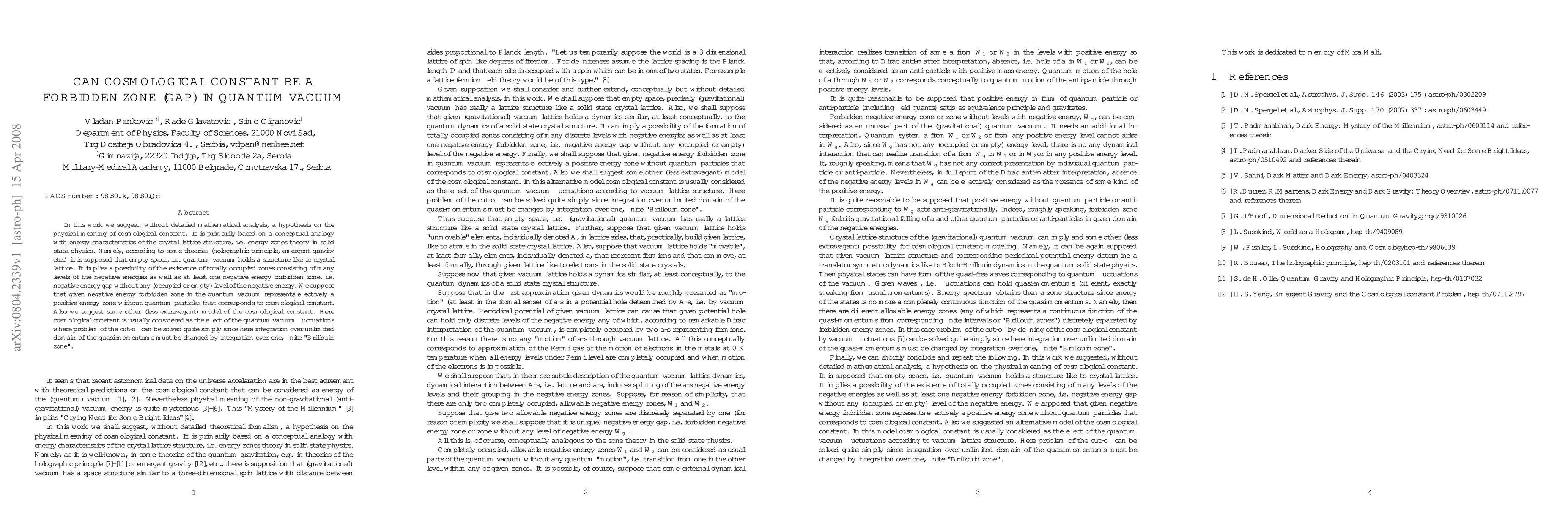 This paper hypothesizes that the cosmological constant may represent a "forbidden zone" or energy gap in the quantum vacuum, analogous to negative energy gaps in crystal lattice structures, potentially resolving the issue of vacuum fluctuations and the need for a cutoff in calculations. It suggests that this gap could correspond to the observed positive energy associated with the cosmological constant.