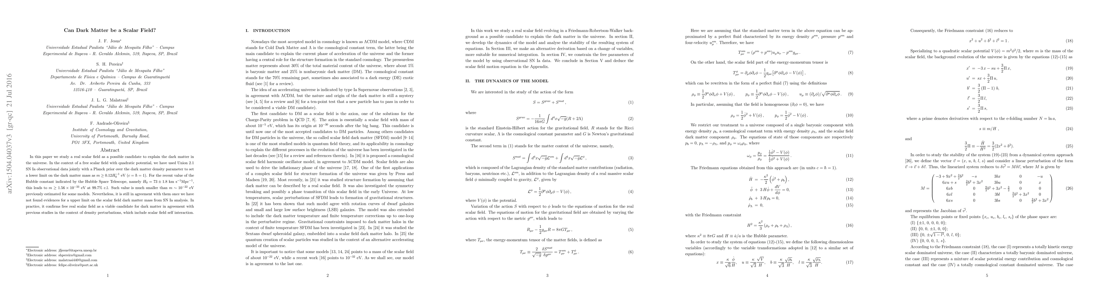 The paper presents a dynamical system analysis of a free real scalar field as a dark matter candidate, deriving constraints on its mass using SNIa data and a Planck prior.