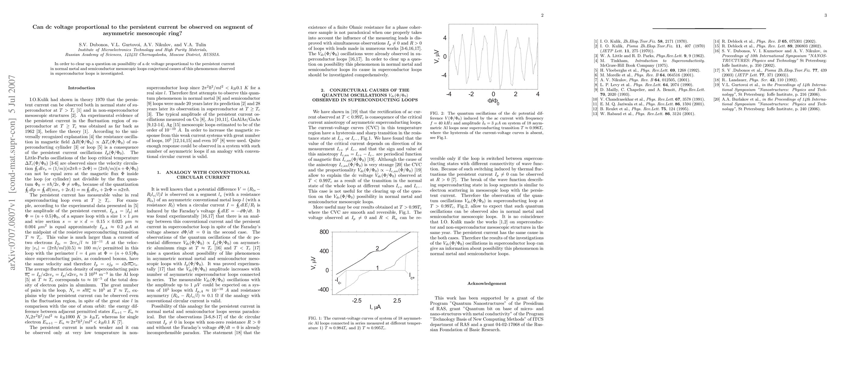 In order to clear up a question on possibility of a dc voltage proportional to the persistent current in normal metal and semiconductor mesoscopic loops conjectural causes of this phenomenon observed in superconductor loops is investigated.