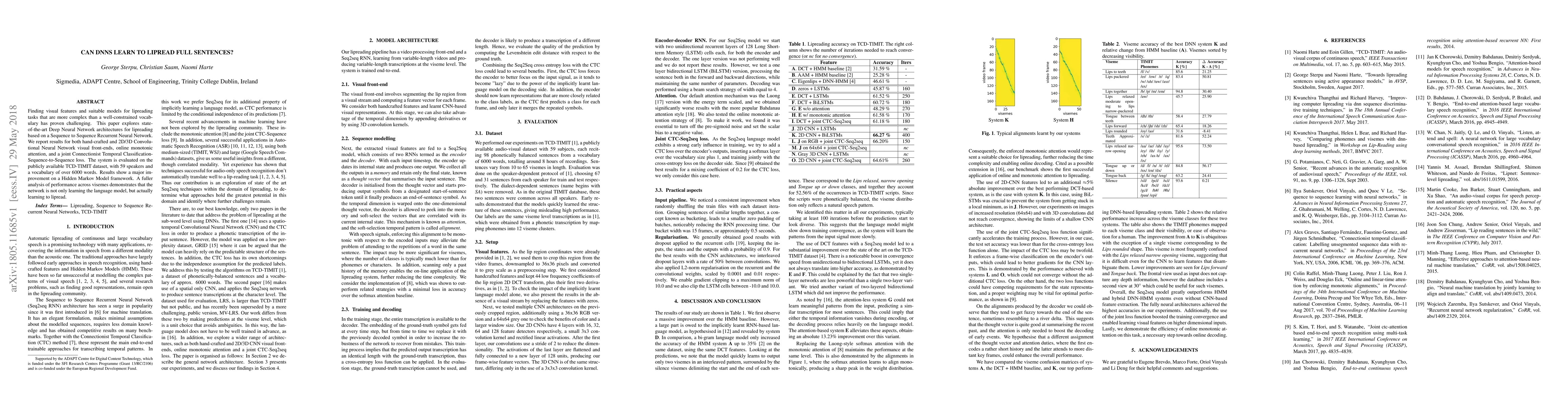 Researchers developed a Deep Neural Network system that can learn to lipread full sentences, outperforming a traditional Hidden Markov Model framework on the TCD-TIMIT dataset.