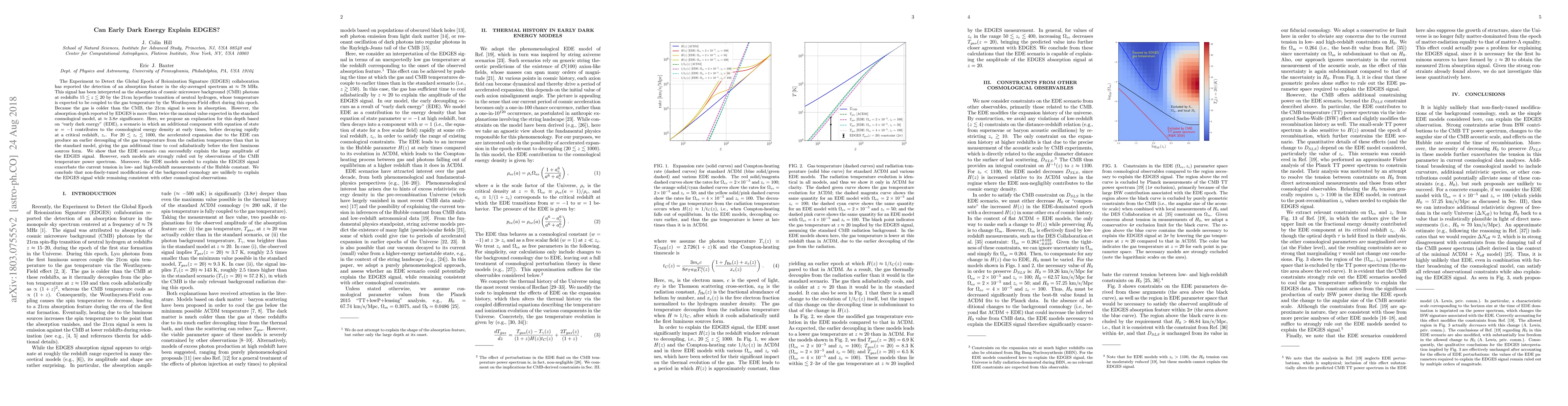Researchers explore a 'early dark energy' scenario to explain the EDGES signal, which suggests an absorption feature in the cosmic microwave background spectrum, but such models contradict observations of the CMB temperature power spectrum and exacerbate existing tensions in Hubble constant measurements.