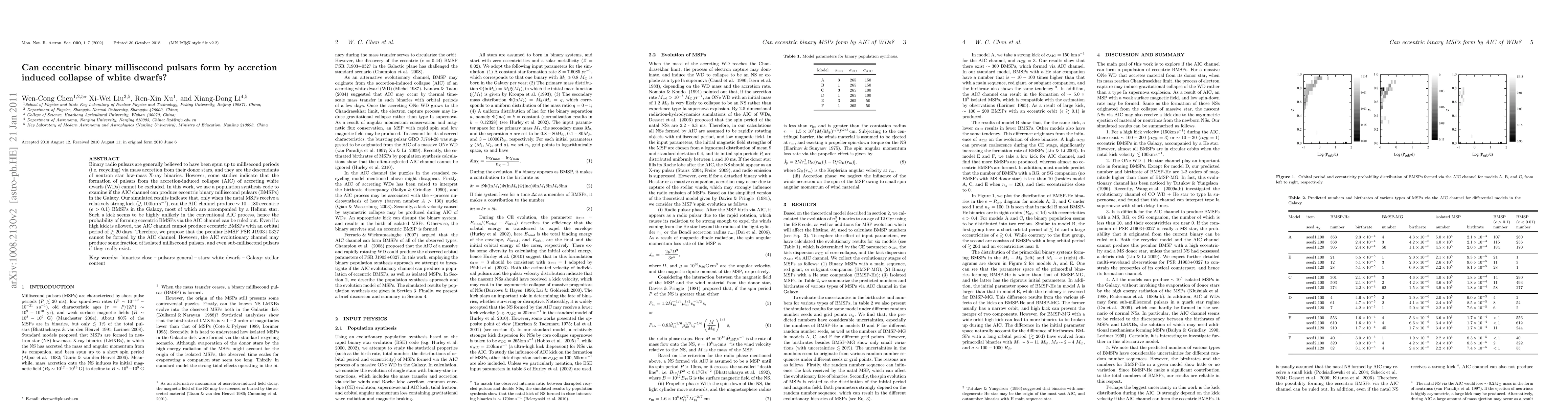 This study uses a population synthesis code to investigate whether eccentric binary millisecond pulsars (BMSPs) can form via the accretion-induced collapse (AIC) of white dwarfs. The results suggest that while the AIC channel can produce eccentric BMSPs, it requires an unlikely high natal kick, ruling out this formation pathway for most eccentric BMSPs.