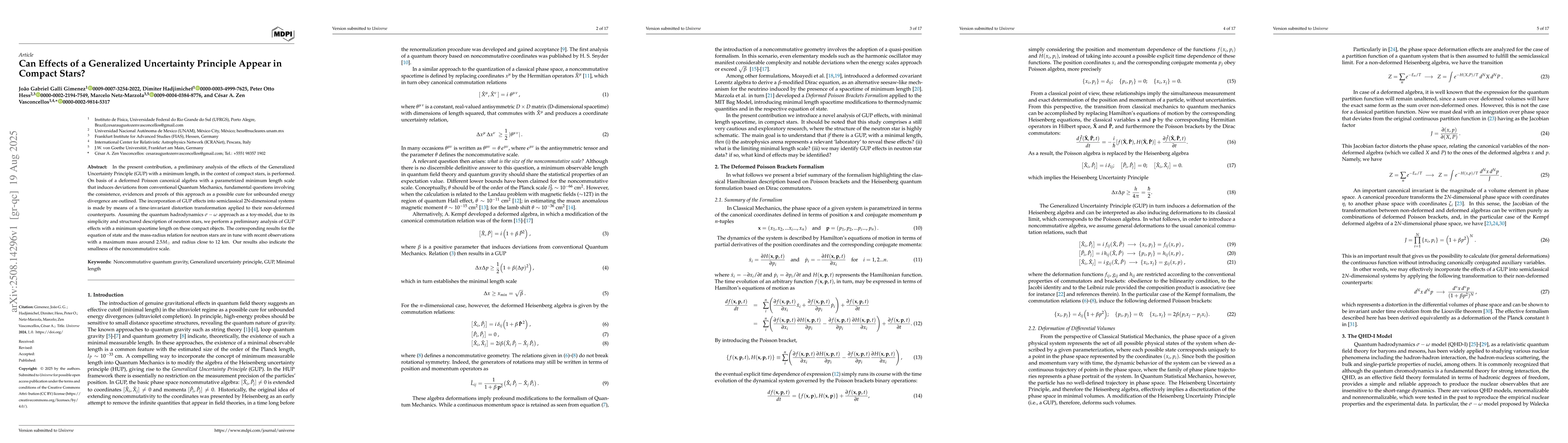 In the present contribution, a preliminary analysis of the effects of the Generalized Uncertainty Principle (GUP) with a minimum length, in the context of compact stars, is performed. On basis of a deformed Poisson canonical algebra with a parametrized minimum length scale that induces deviations from conventional Quantum Mechanics, fundamental questions involving the consistence, evidences and proofs of this approach as a possible cure for unbounded energy divergence are outlined. The incorporation of GUP effects into semiclassical 2N-dimensional systems is made by means of a time-invariant distortion transformation applied to their non-deformed counterparts. Assuming the quantum hadrodynamics $\sigma-\omega$ approach as a toy-model, due to its simplicity and structured description of neutron stars, we perform a preliminary analysis of GUP effects with a minimum spacetime length on these compact objects. The corresponding results for the equation of state and the mass-radius relation for neutron stars are in tune with recent observations with a maximum mass around $2.5 M_{\odot}$ and radius close to $12$ km. Our results also indicate the smallness of the noncommutative scale.