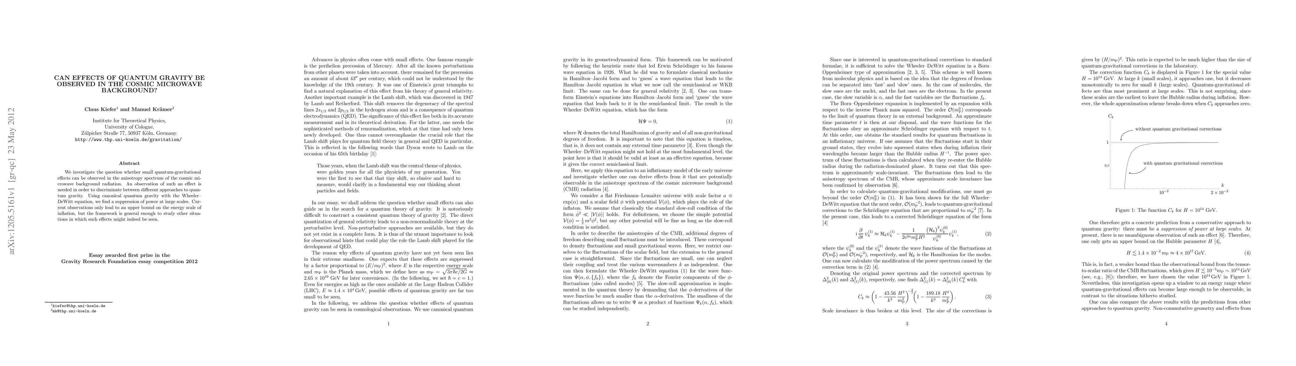 Researchers investigated whether quantum gravity effects can be observed in the cosmic microwave background radiation, finding a suppression of power at large scales, but current observations only provide an upper bound on energy scale inflation.