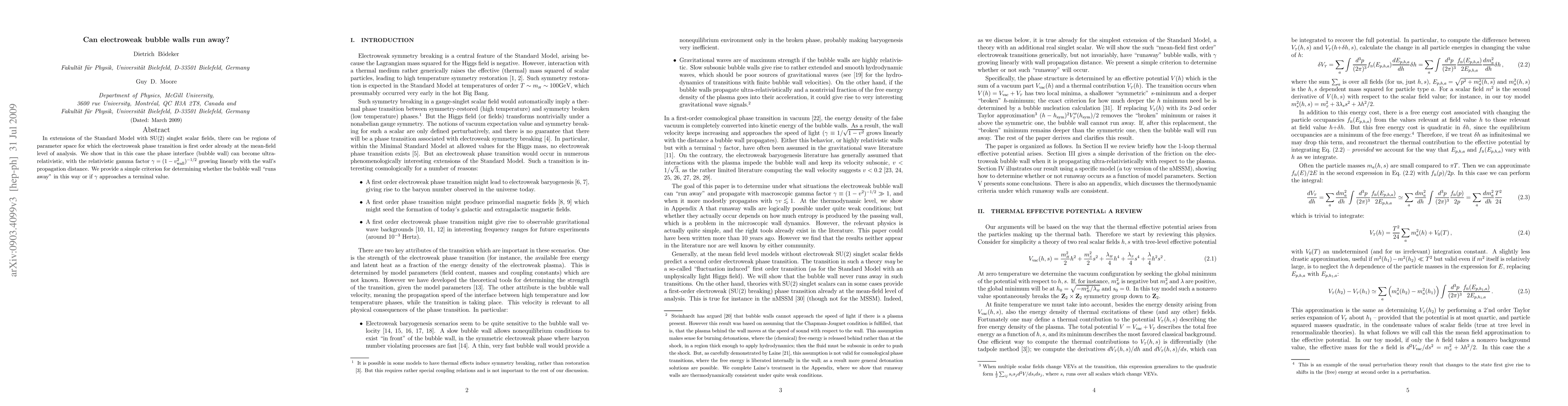 In extensions of the Standard Model with SU(2) singlet scalar fields, there can be regions of parameter space for which the electroweak phase transition is first order already at the mean-field level of analysis. We show that in this case the phase interface (bubble wall) can become ultra-relativistic, with the relativistic gamma factor gamma = (1-v_{wall}^2)^{-1/2} growing linearly with the wall's propagation distance. We provide a simple criterion for determining whether the bubble wall "runs away" in this way or if gamma approaches a terminal value.