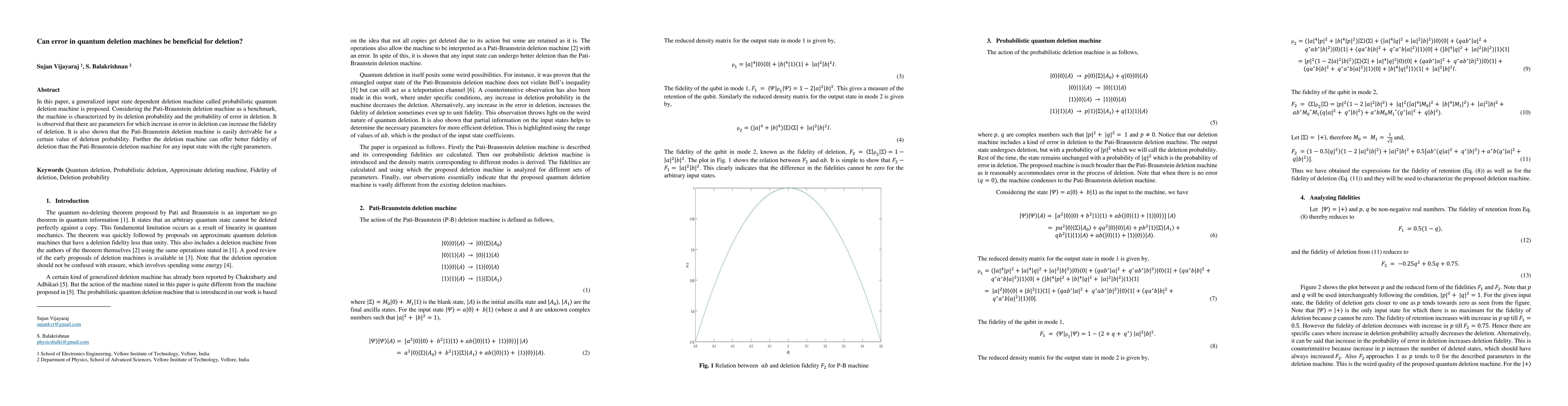 This paper proposes a probabilistic quantum deletion machine that shows error can enhance deletion fidelity under certain conditions. It demonstrates that the Pati-Braunstein deletion machine can be derived for specific deletion probabilities and that the proposed machine can achieve better deletion fidelity than the benchmark for appropriate parameter settings.
