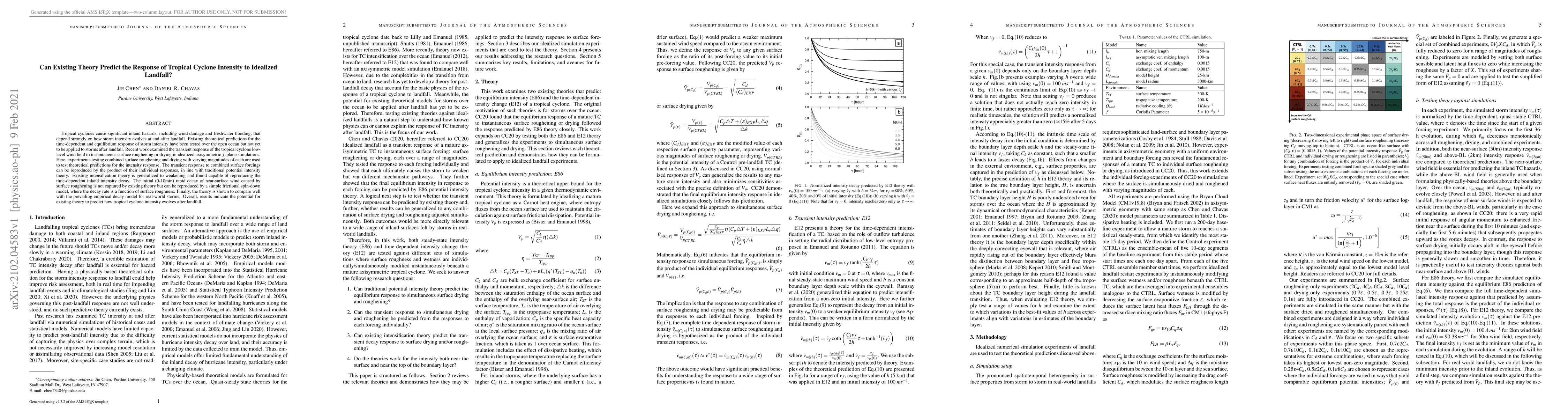 This study tests existing theoretical predictions of tropical cyclone intensity decay after landfall against idealized simulations of surface roughening and drying. The results show that traditional theory can reproduce the time-dependent inland intensity decay, though it fails to capture the initial rapid wind decay, which is better modeled by a frictional spin-down approach.