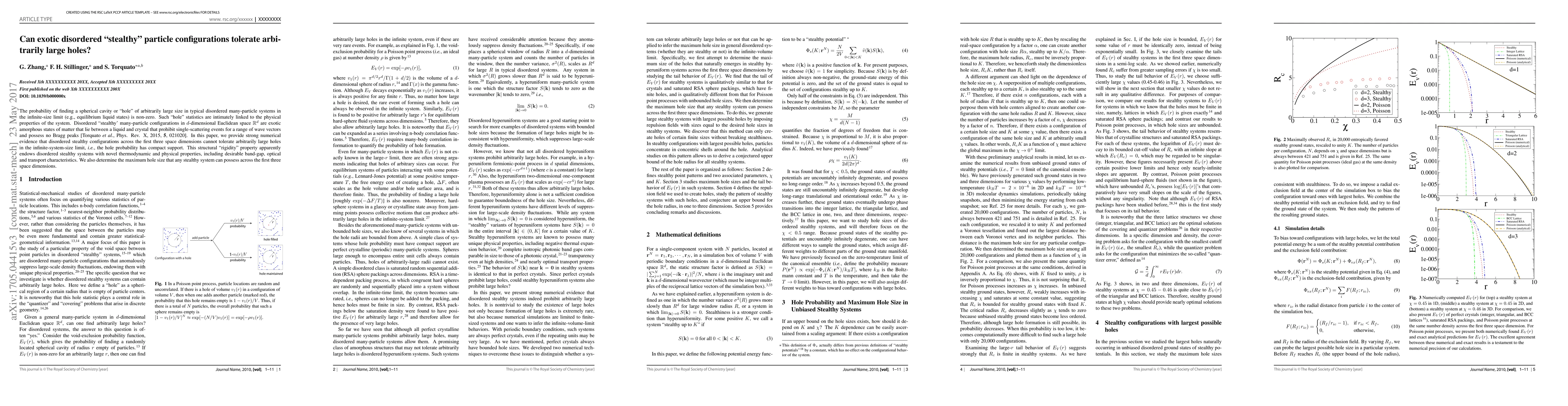 The probability of finding a spherical cavity or "hole" of arbitrarily large size in typical disordered many-particle systems in the infinite-size limit (e.g., equilibrium liquid states) is non-zero. Such "hole" statistics are intimately linked to the physical properties of the system. Disordered "stealthy' many-particle configurations in $d$-dimensional Euclidean space $\mathbb{R}^d$ are exotic amorphous states of matter that lie between a liquid and crystal that prohibit single-scattering events for a range of wave vectors and possess no Bragg peaks [Torquato et al., Phys. Rev. X, 2015, 5, 021020]. In this paper, we provide strong numerical evidence that disordered stealthy configurations across the first three space dimensions cannot tolerate arbitrarily large holes in the infinite-system-size limit, i.e., the hole probability has compact support. This structural "rigidity" property apparently endows disordered stealthy systems with novel thermodynamic and physical properties, including desirable band-gap, optical and transport characteristics. We also determine the maximum hole size that any stealthy system can possess across the first three space dimensions.