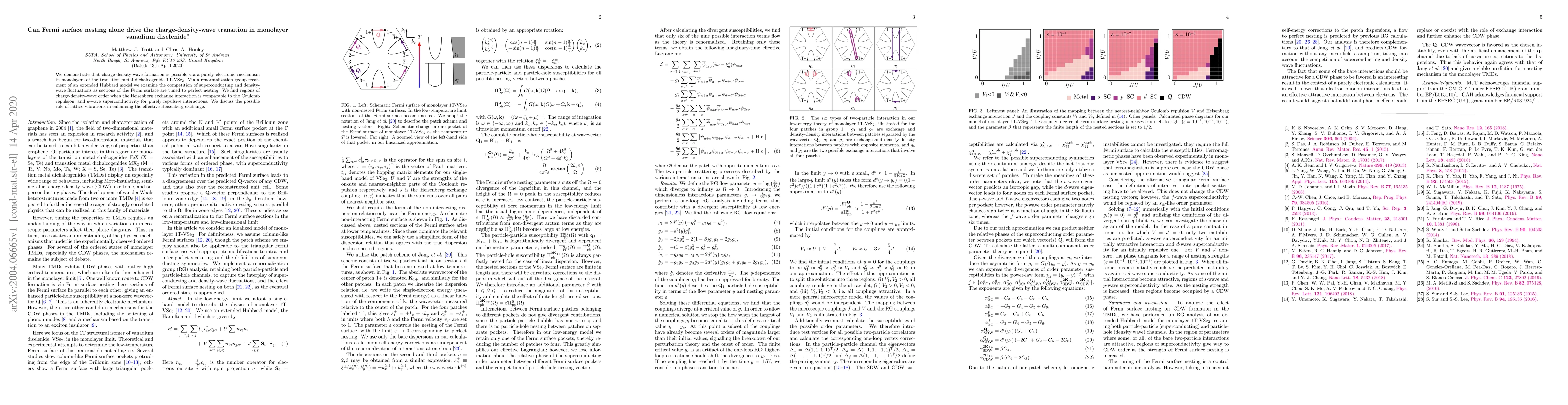 This study shows that charge-density-wave formation in monolayer 1T-VSe$_2$ can occur through purely electronic mechanisms, driven by Fermi surface nesting and competition between superconductivity and density-wave fluctuations. The research suggests that lattice vibrations may enhance the effective Heisenberg exchange, potentially supporting charge-density-wave order.