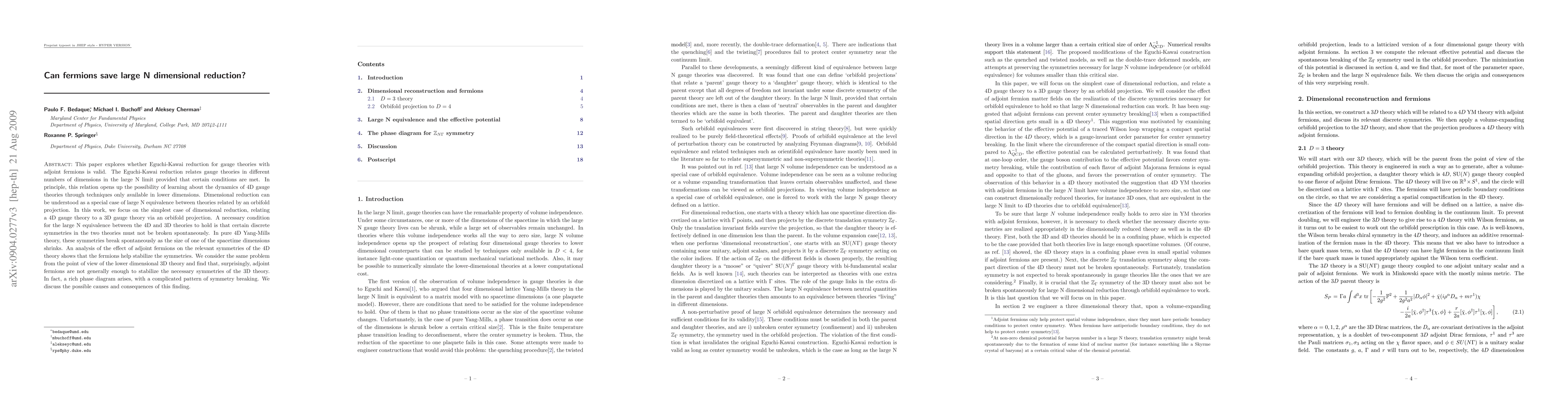 Researchers explored whether fermions can help preserve symmetries in gauge theories through dimensional reduction, finding that they do not stabilize necessary symmetries when viewed from the lower-dimensional perspective, leading to a rich phase diagram of symmetry breaking.