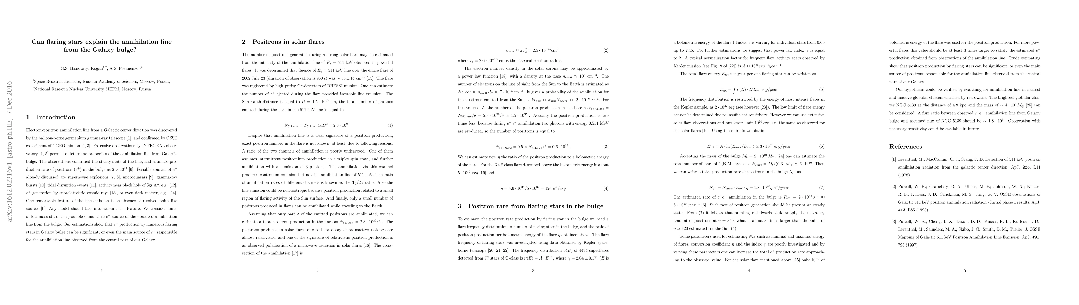 This paper explores whether flares from low-mass stars in the Galactic bulge could be a significant source of the electron-positron annihilation line observed from the center of the Milky Way, suggesting that these flares may contribute substantially or even predominantly to the observed emission.