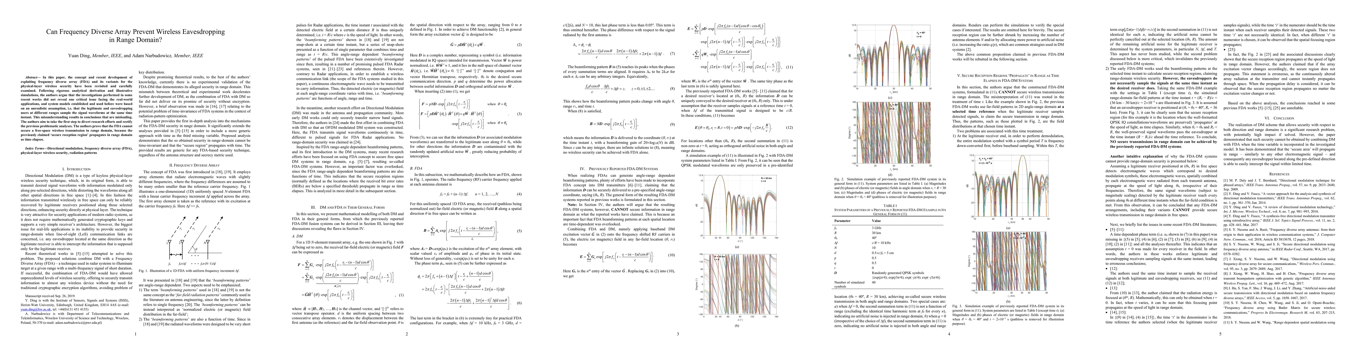This paper examines the use of frequency diverse arrays (FDA) for wireless security, finding that previous studies incorrectly assumed simultaneous signal sampling by legitimate and eavesdropping users. The authors demonstrate that FDA cannot secure wireless transmissions in the range domain due to the propagation of the 'secure reception region' over time.