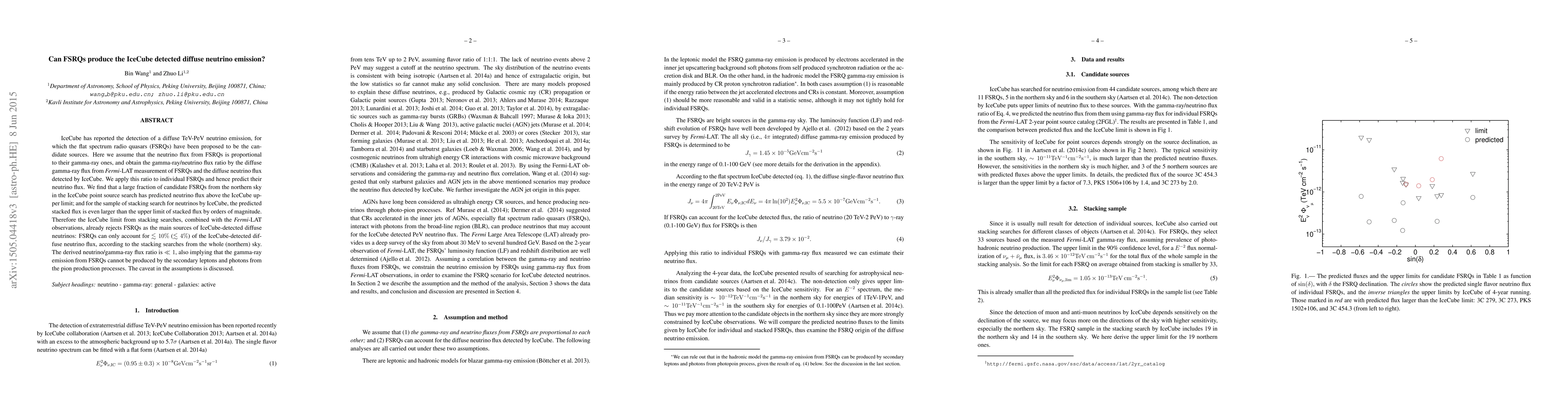 This paper investigates whether flat spectrum radio quasars (FSRQs) can be the main sources of the diffuse neutrino emission detected by IceCube. It finds that FSRQs can only account for less than 10% of the detected neutrinos, and the derived neutrino/gamma-ray flux ratio is significantly less than 1, suggesting FSRQs are not the primary sources for IceCube's diffuse neutrino emission.