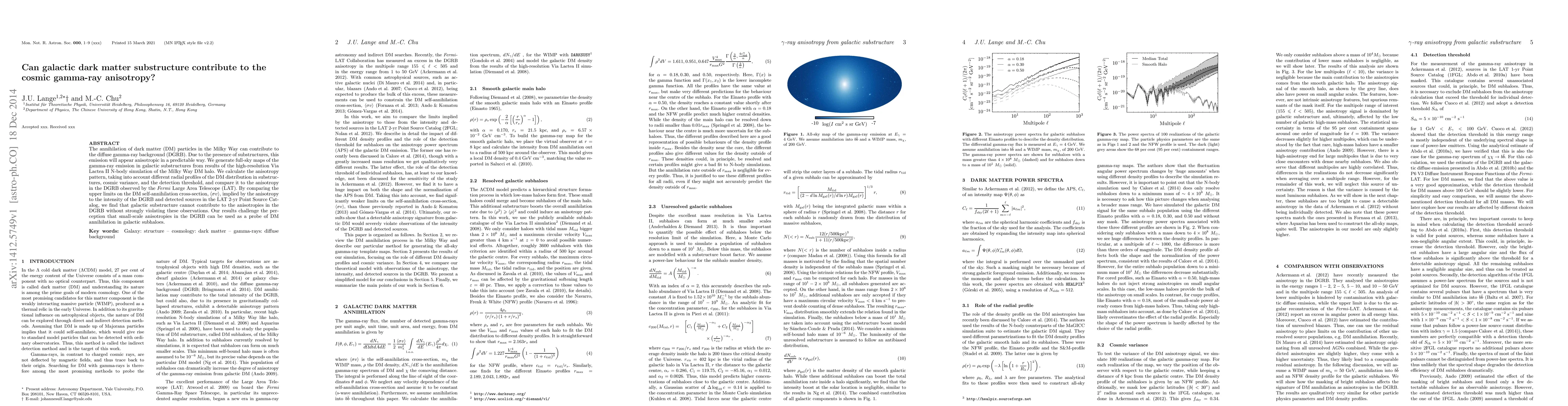 This study investigates whether galactic dark matter substructures contribute to cosmic gamma-ray anisotropy, finding that such substructures cannot account for observed anisotropies in the diffuse gamma-ray background without violating current observational limits. The research uses high-resolution simulations and compares results to Fermi LAT data.