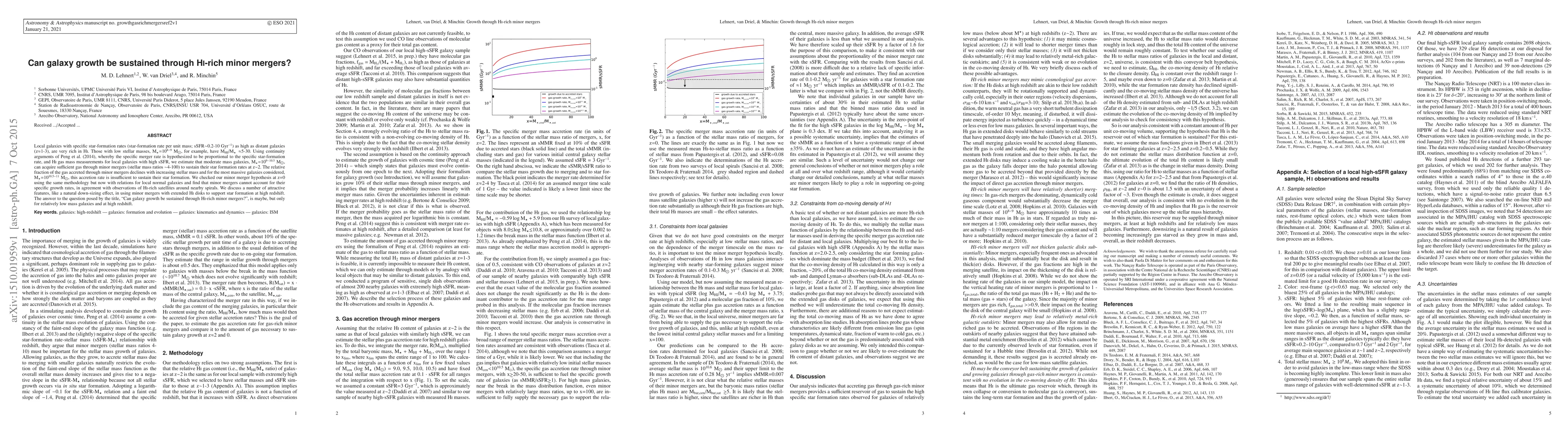 This paper explores whether HI-rich minor mergers can sustain galaxy growth, finding that they can support star formation in moderate-mass galaxies at high redshifts (z~2) but not in more massive galaxies. The study concludes that while minor mergers can maintain growth in low-mass galaxies, they are insufficient for sustaining star formation in higher-mass galaxies.