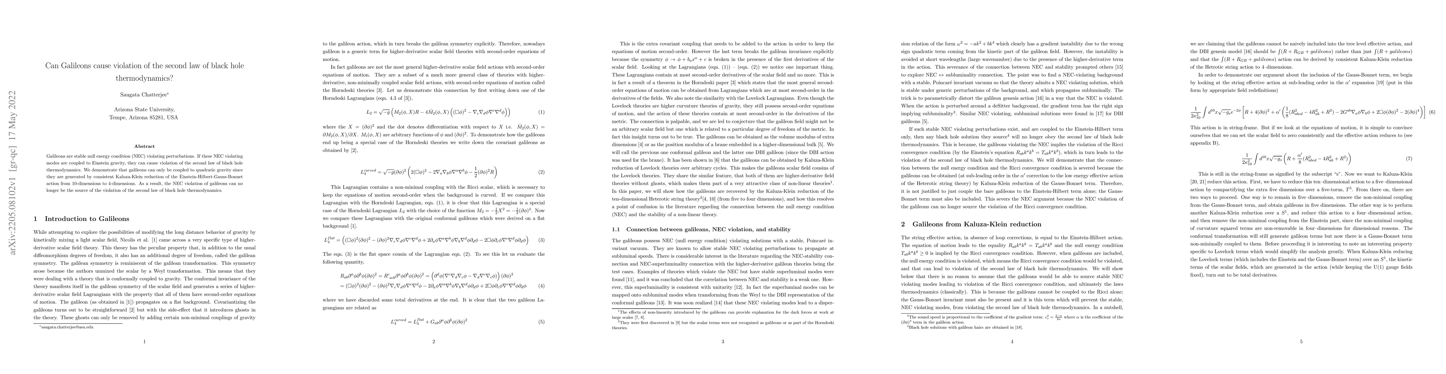 This paper explores whether galileons, which violate the null energy condition, can lead to a violation of the second law of black hole thermodynamics. It concludes that galileons can only be coupled to quadratic gravity, thus they cannot be the source of such thermodynamic violations.
