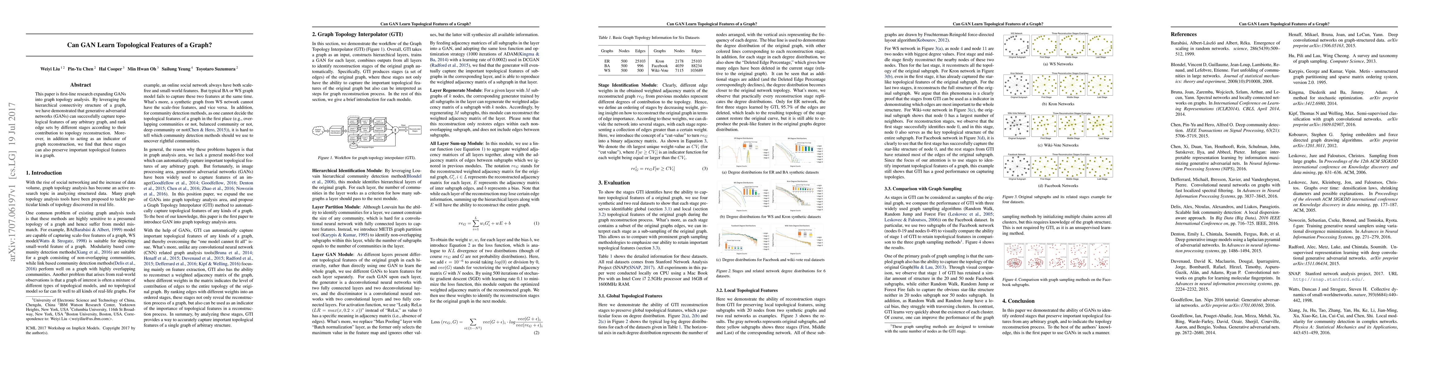 This paper demonstrates that generative adversarial networks (GANs) can effectively learn and rank topological features of arbitrary graphs based on their hierarchical connectivity, showing potential for preserving important graph structures.