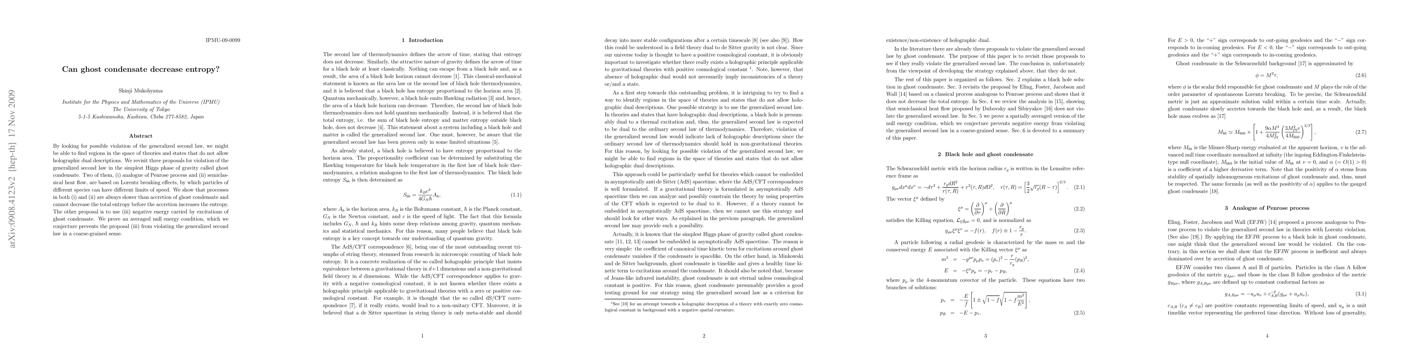The paper investigates whether ghost condensate can decrease entropy by examining violations of the generalized second law, finding that processes involving Lorentz breaking and negative energy fail to decrease total entropy. The study concludes that the generalized second law holds in both fine-grained and coarse-grained senses.