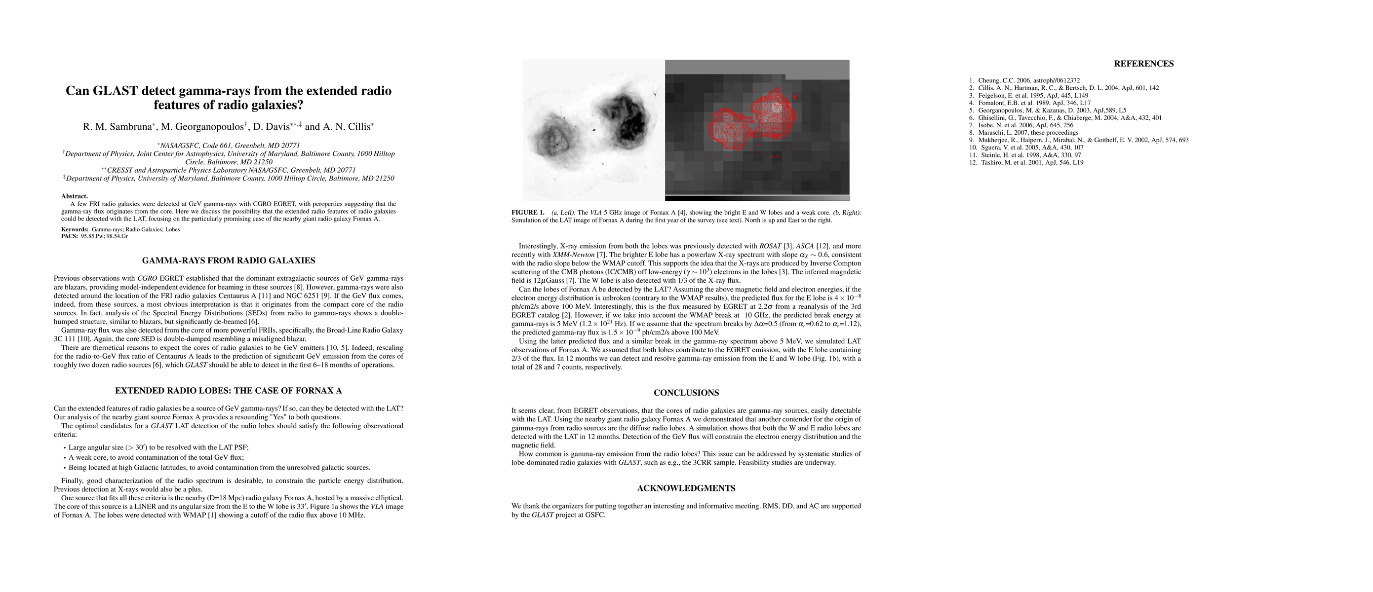 Summary: This paper explores whether the GLAST Large Area Telescope (LAT) can detect gamma-rays from the extended radio features of radio galaxies, using Fornax A as a case study, following previous detections of GeV gamma-rays from FRI radio galaxies suggesting core-origin flux.
