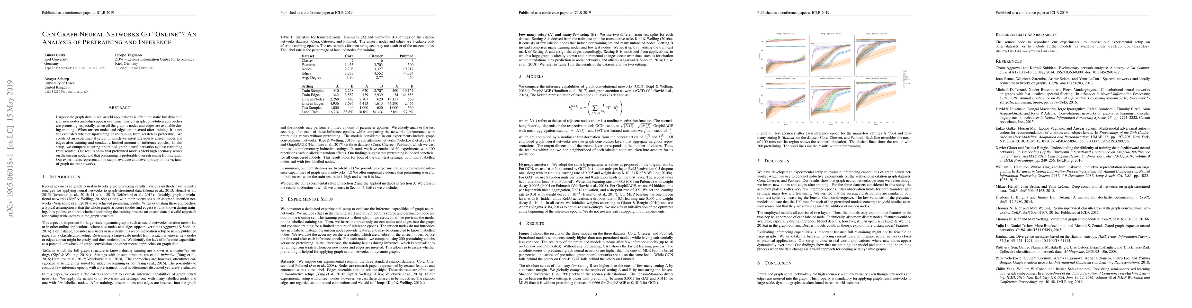 Large-scale graph data in real-world applications is often not static but dynamic, i. e., new nodes and edges appear over time. Current graph convolution approaches are promising, especially, when all the graph's nodes and edges are available during training. When unseen nodes and edges are inserted after training, it is not yet evaluated whether up-training or re-training from scratch is preferable. We construct an experimental setup, in which we insert previously unseen nodes and edges after training and conduct a limited amount of inference epochs. In this setup, we compare adapting pretrained graph neural networks against retraining from scratch. Our results show that pretrained models yield high accuracy scores on the unseen nodes and that pretraining is preferable over retraining from scratch. Our experiments represent a first step to evaluate and develop truly online variants of graph neural networks.