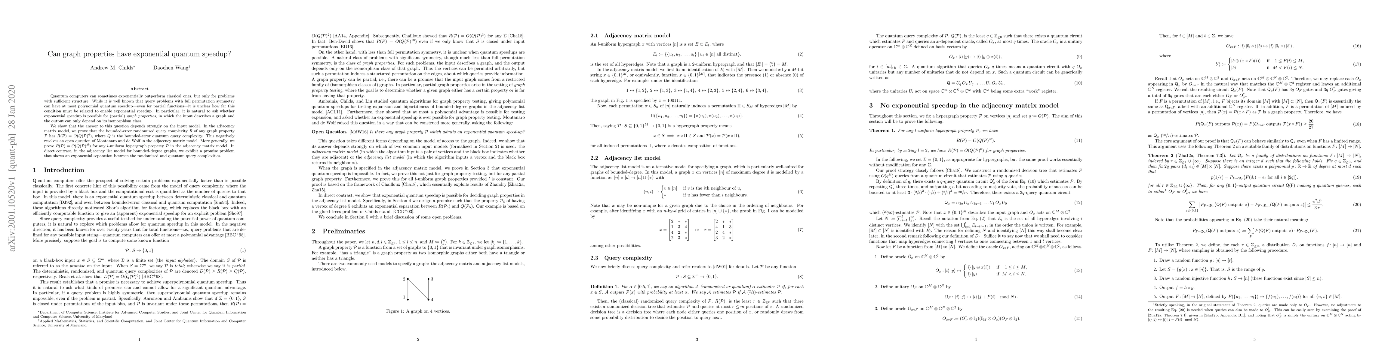 Researchers explore whether graph properties can have exponential quantum speedup, finding that it depends on the input model, with a potential $O(Q^6)$ bound in one case and an exponential separation in another.