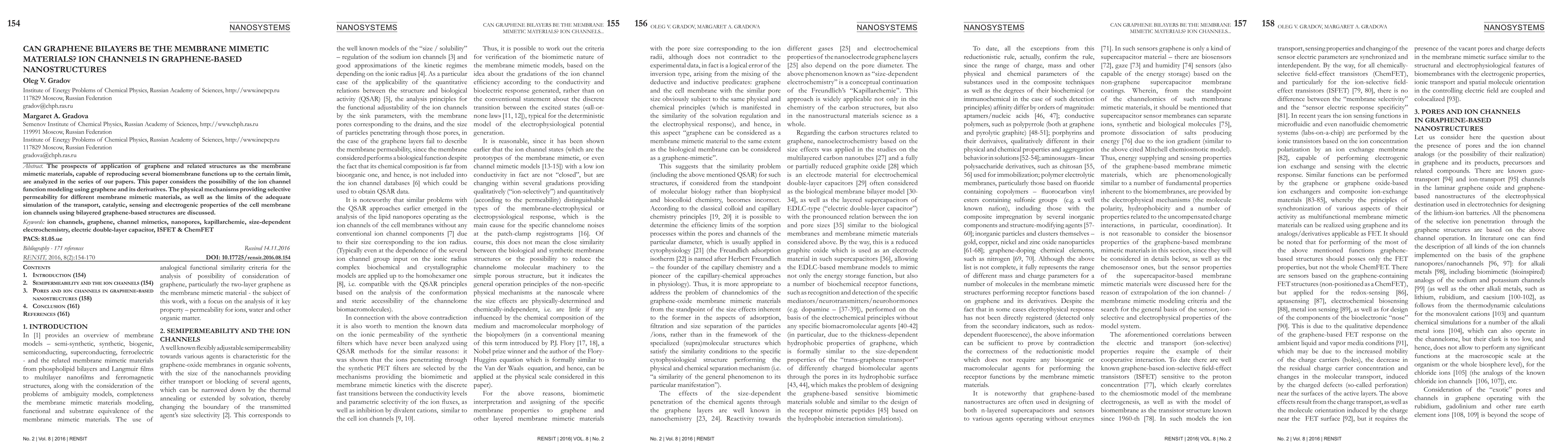 This paper explores the potential of graphene bilayers to mimic the ion channel functions of biological membranes, discussing the physical mechanisms enabling selective permeability and the limitations of graphene-based structures in simulating cellular transport and sensing properties.
