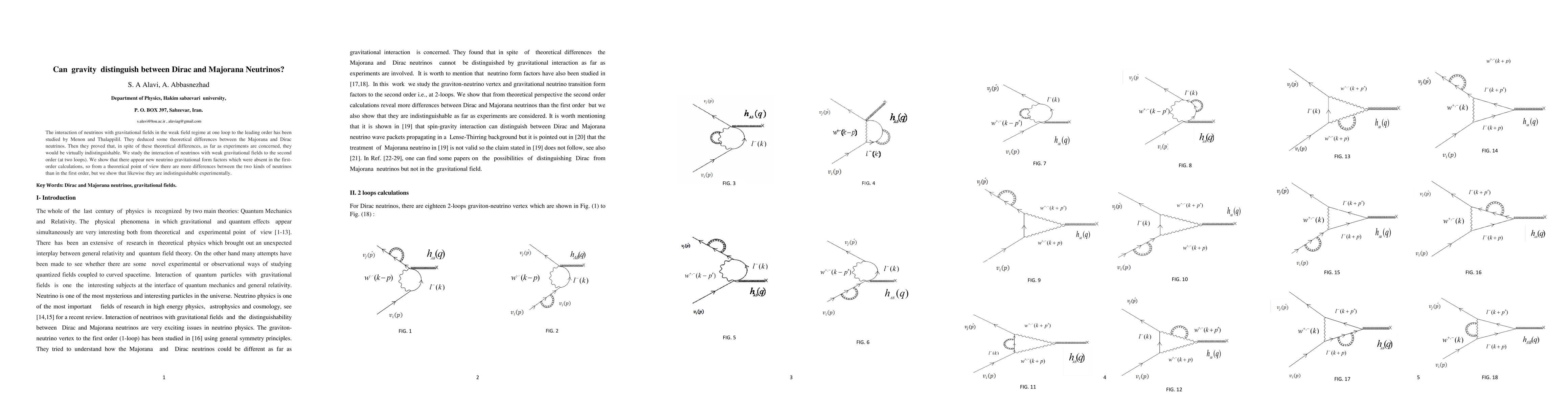 The interaction of neutrinos with gravitational fields in the weak field regime at one loop to the leading order has been studied by Menon and Thalappilil. They deduced some theoretical differences between the Majorana and Dirac neutrinos. Then they proved that, in spite of these theoretical differences, as far as experiments are concerned, they would be virtually indistinguishable. We study the interaction of neutrinos with weak gravitational fields to the second order (at two loops). We show that there appear new neutrino gravitational form factors which were absent in the first-order calculations, so from a theoretical point of view there are more differences between the two kinds of neutrinos than in the first order, but we show that likewise they are indistinguishable experimentally.