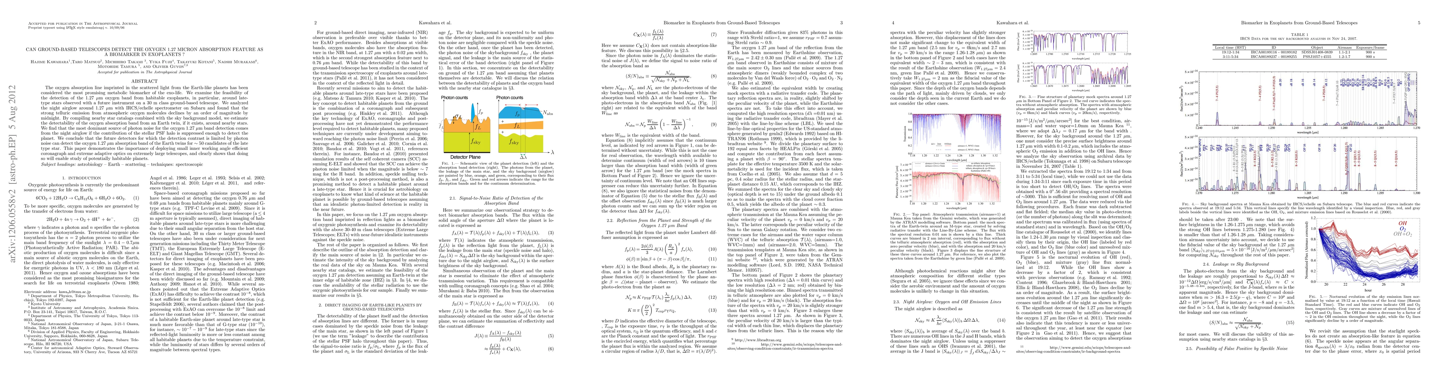 The oxygen absorption line imprinted in the scattered light from the Earth-like planets has been considered the most promising metabolic biomarker of the exo-life. We examine the feasibility of the detection of the 1.27 micron oxygen band from habitable exoplanets, in particular, around late- type stars observed with a future instrument on a 30 m class ground-based telescope. We analyzed the night airglow around 1.27 micron with IRCS/echelle spectrometer on Subaru and found that the strong telluric emission from atmospheric oxygen molecules declines by an order of magnitude by midnight. By compiling nearby star catalogs combined with the sky background model, we estimate the detectability of the oxygen absorption band from an Earth twin, if it exists, around nearby stars. We find that the most dominant source of photon noise for the oxygen 1.27 micron band detection comes from the night airglow if the contribution of the stellar PSF halo is suppressed enough to detect the planet. We conclude that the future detectors for which the detection contrast is limited by photon noise can detect the oxygen 1.27 micron absorption band of the Earth twins for ~50 candidates of the late type star. This paper demonstrates the importance of deploying small inner working angle efficient coronagraph and extreme adaptive optics on extremely large telescopes, and clearly shows that doing so will enable study of potentially habitable planets.