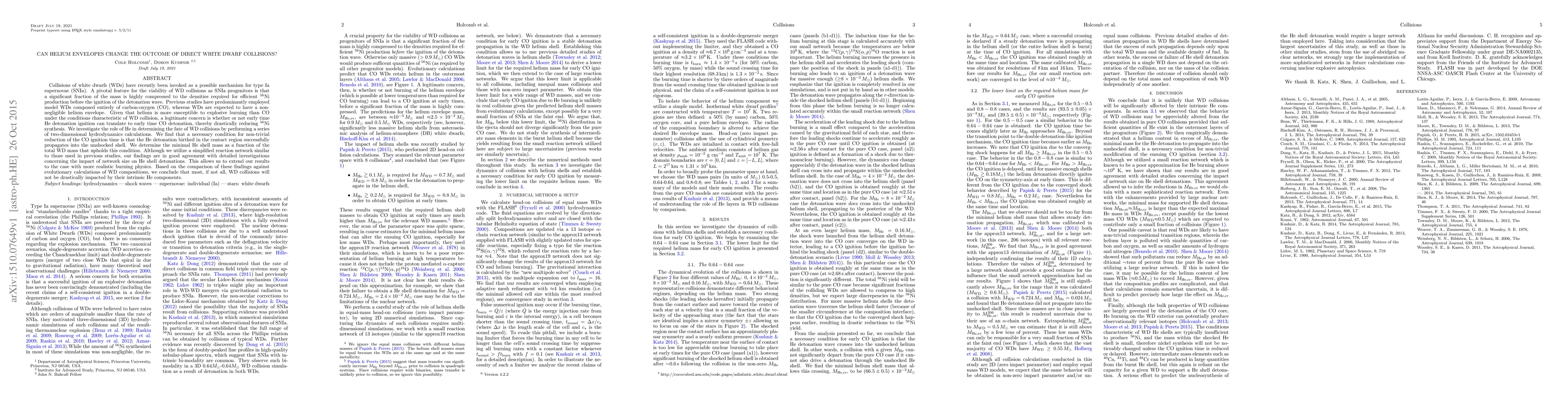 A study investigates whether helium envelopes in white dwarf collisions impact type Ia supernovae, finding that most WD collisions will not be drastically affected.