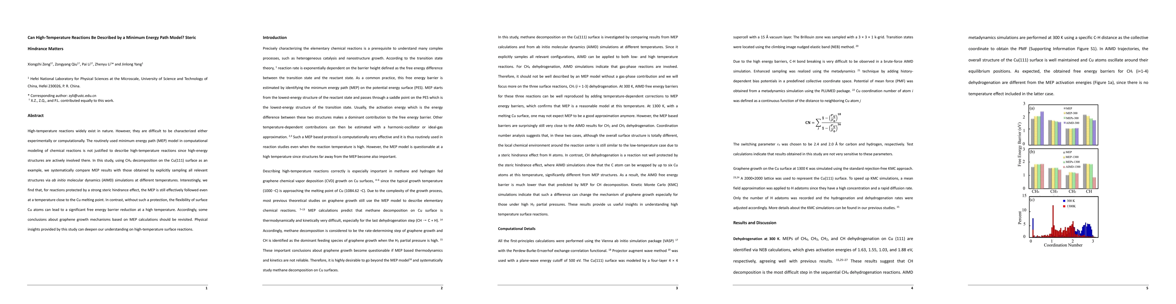 High-temperature reactions widely exist in nature. However, they are difficult to be characterized either experimentally or computationally. The routinely used minimum energy path (MEP) model in computational modeling of chemical reactions is not justified to describe high-temperature reactions since high-energy structures are actively involved there. In this study, using CH4 decomposition on the Cu(111) surface as an example, we systematically compare MEP results with those obtained by explicitly sampling all relevant structures via ab initio molecular dynamics (AIMD) simulations at different temperatures. Interestingly, we find that, for reactions protected by a strong steric hindrance effect, the MEP is still effectively followed even at a temperature close to the Cu melting point. In contrast, without such a protection, the flexibility of surface Cu atoms can lead to a significant free energy barrier reduction at a high temperature. Accordingly, some conclusions about graphene growth mechanisms based on MEP calculations should be revisited. Physical insights provided by this study can deepen our understanding on high-temperature surface reactions.