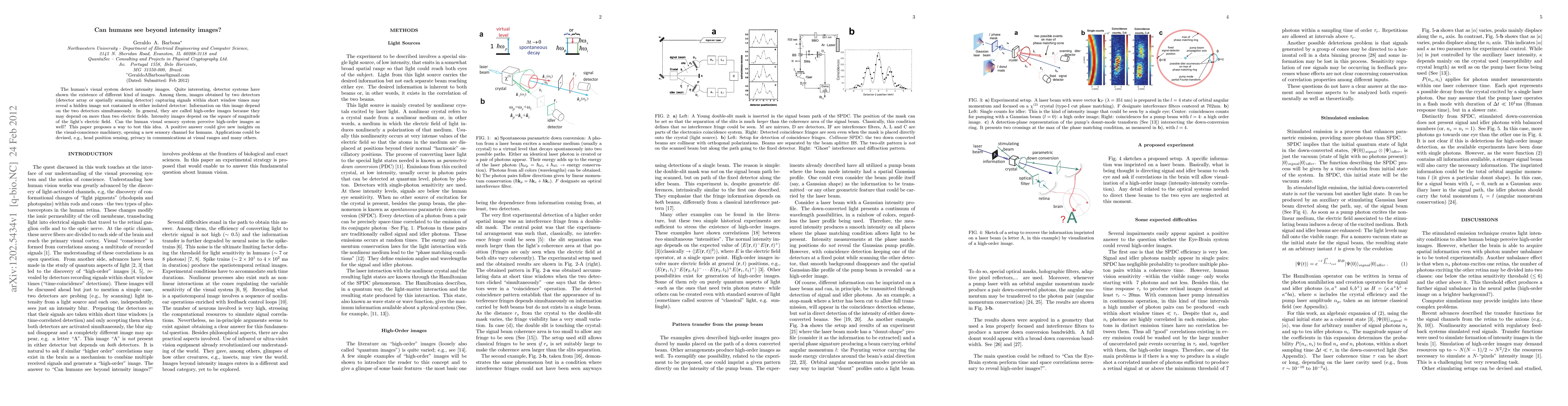 The human's visual system detect intensity images. Quite interesting, detector systems have shown the existence of different kind of images. Among them, images obtained by two detectors (detector array or spatially scanning detector) capturing signals within short window times may reveal a "hidden" image not contained in either isolated detector: Information on this image depend on the two detectors simultaneously. In general, they are called "high-order" images because they may depend on more than two electric fields. Intensity images depend on the square of magnitude of the light's electric field. Can the human visual sensory system perceive high-order images as well? This paper proposes a way to test this idea. A positive answer could give new insights on the "visual-conscience" machinery, opening a new sensory channel for humans. Applications could be devised, e.g., head position sensing, privacy in communications at visual ranges and many others.