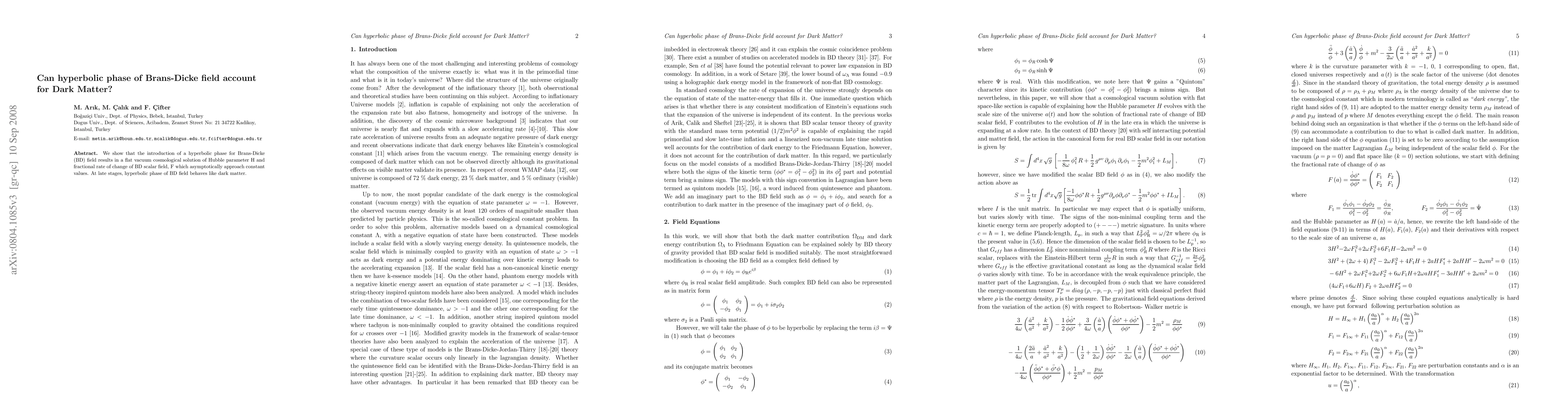 We show that the introduction of a hyperbolic phase for Brans-Dicke (BD) field results in a flat vacuum cosmological solution of Hubble parameter H and fractional rate of change of BD scalar field, F which asymptotically approach constant values. At late stages, hyperbolic phase of BD field behaves like dark matter.