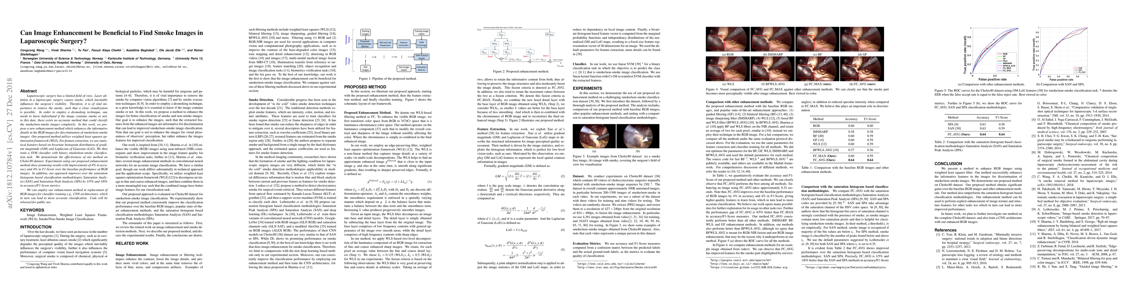 Researchers propose a new image enhancement method using weighted least squares optimization to improve smoke detection in laparoscopic surgery images, achieving 4% accuracy improvements over baseline performance.